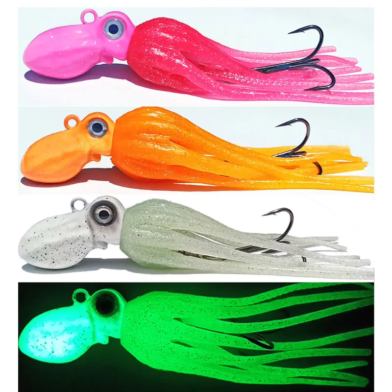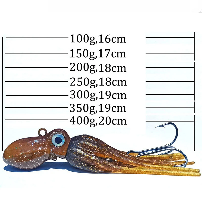 Señuelo de pesca con cabeza de cobre brillante, falda de calamar y pulpo, Leurre 100g150g200g250g300g350g con anzuelo, señuelo de pesca de arrastre de gran juego