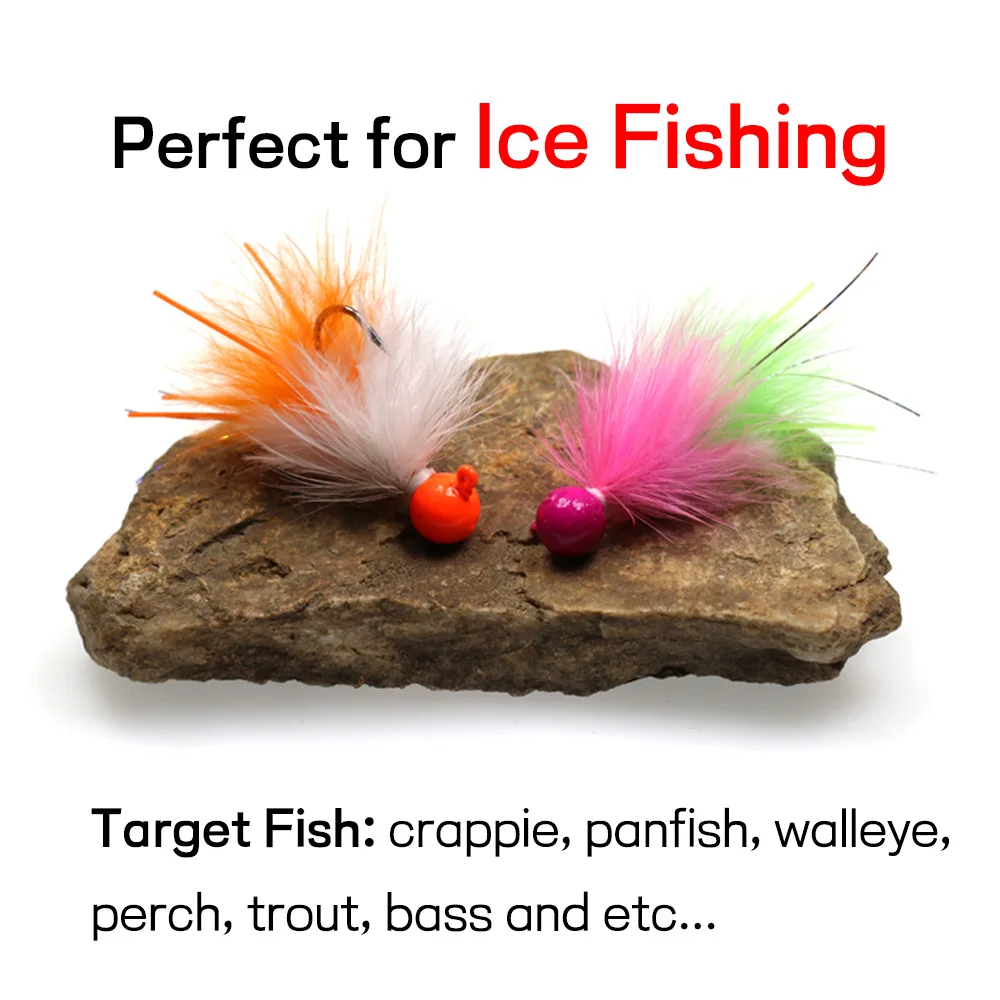 4 piezas UV naranja Rosa cabeza de plantilla Crappie Jigs Marabou pluma de hielo señuelo de pesca cebo para trucha bluewear Perch Walleye Bass