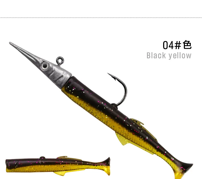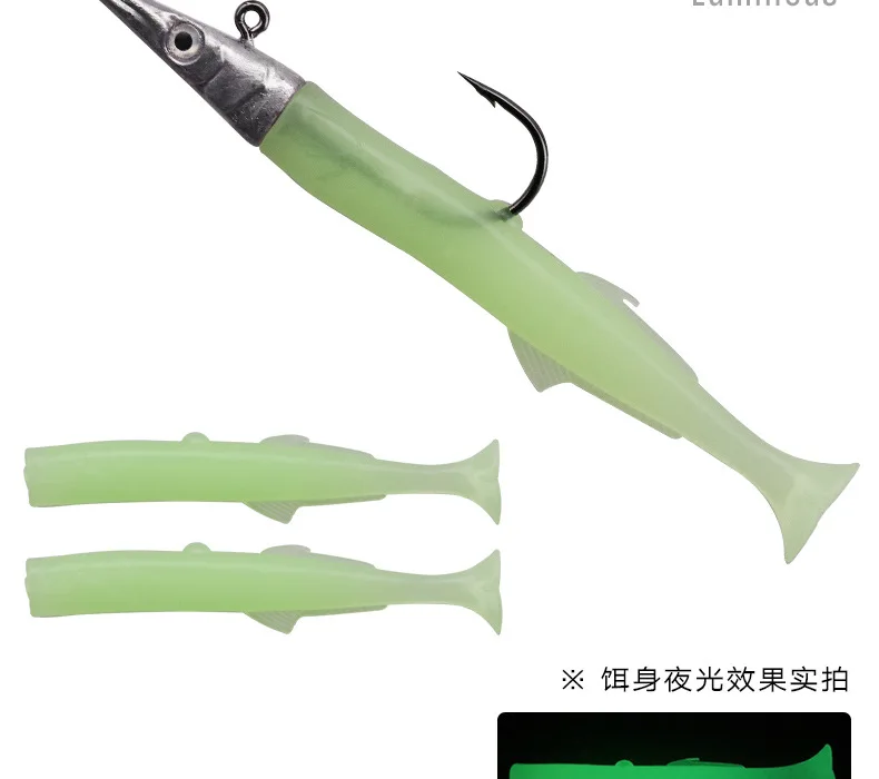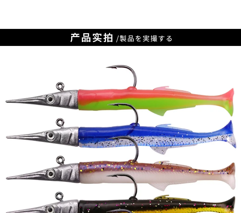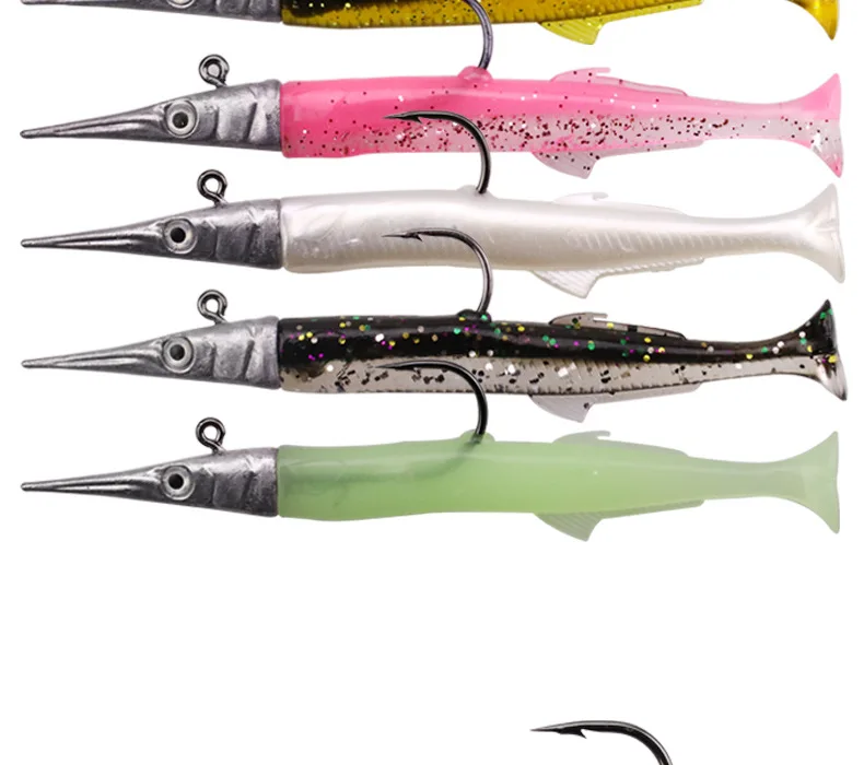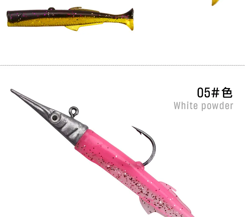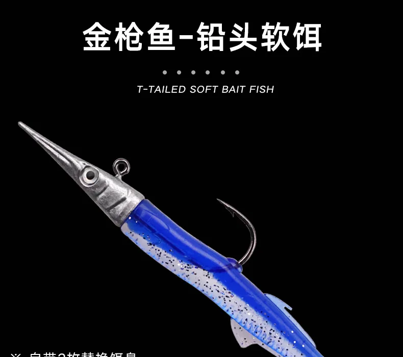 Señuelo de pesca con cabeza plomada, cebo blando, anzuelo único, cola en T, 14g, señuelos artificiales para atún