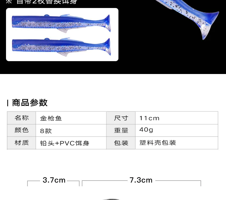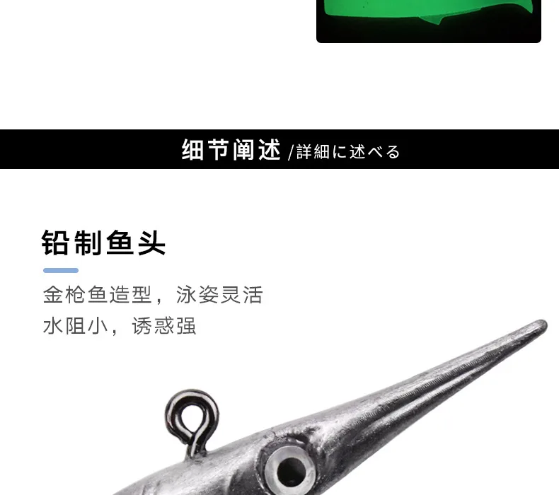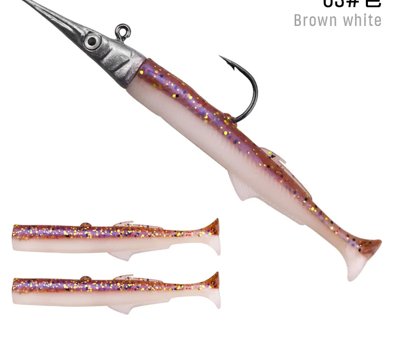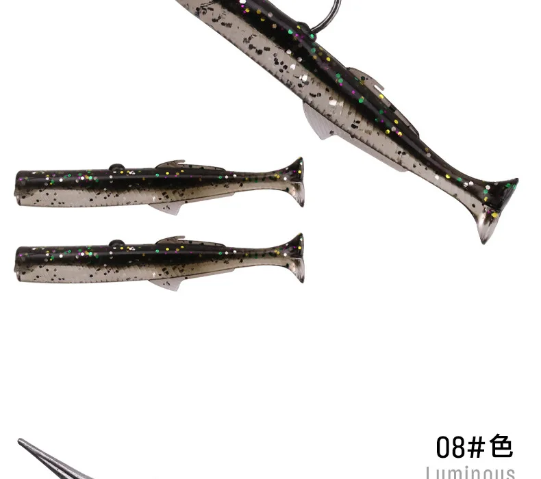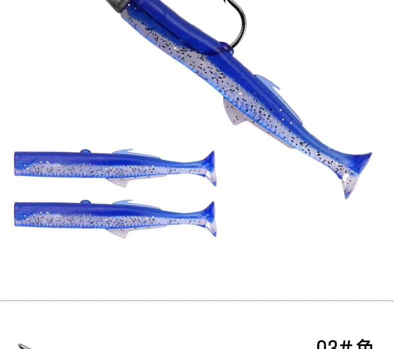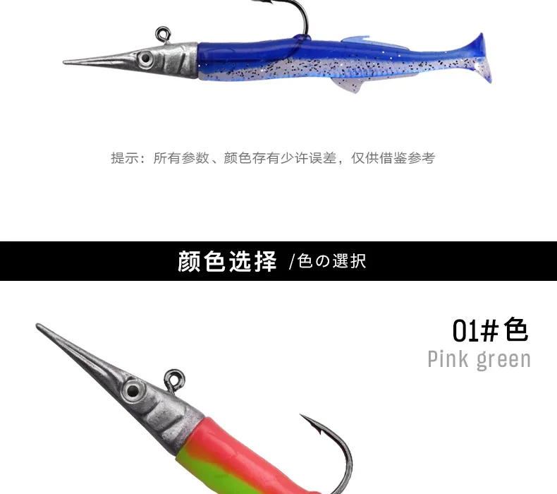 Señuelo de pesca con cabeza plomada, cebo blando, anzuelo único, cola en T, 14g, señuelos artificiales para atún