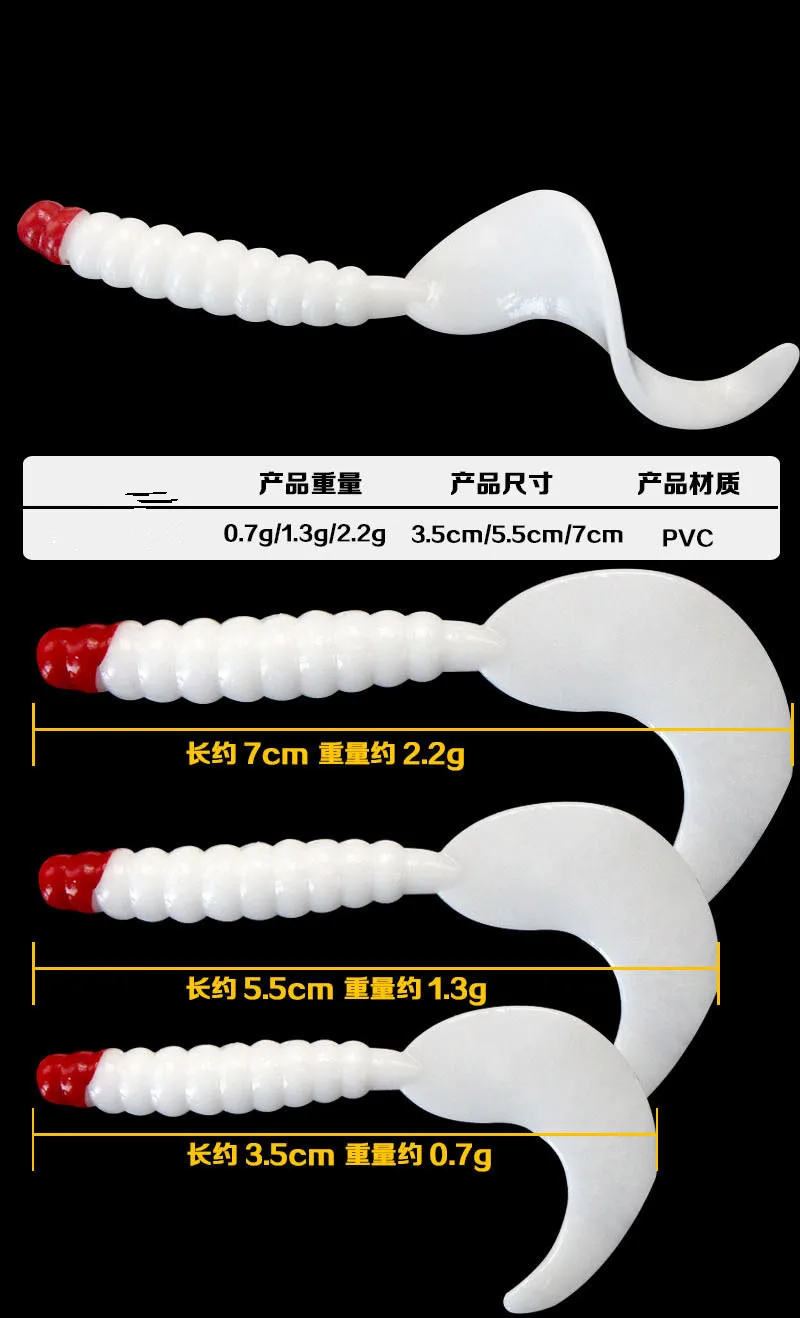 Señuelo de pesca de cabeza roja, cola de Hoz larga, 3,5 cm/5cm/6,5 cm, señuelos artificiales, lote de 6 piezas