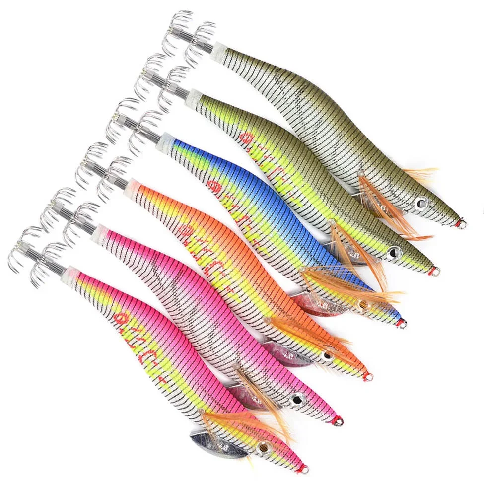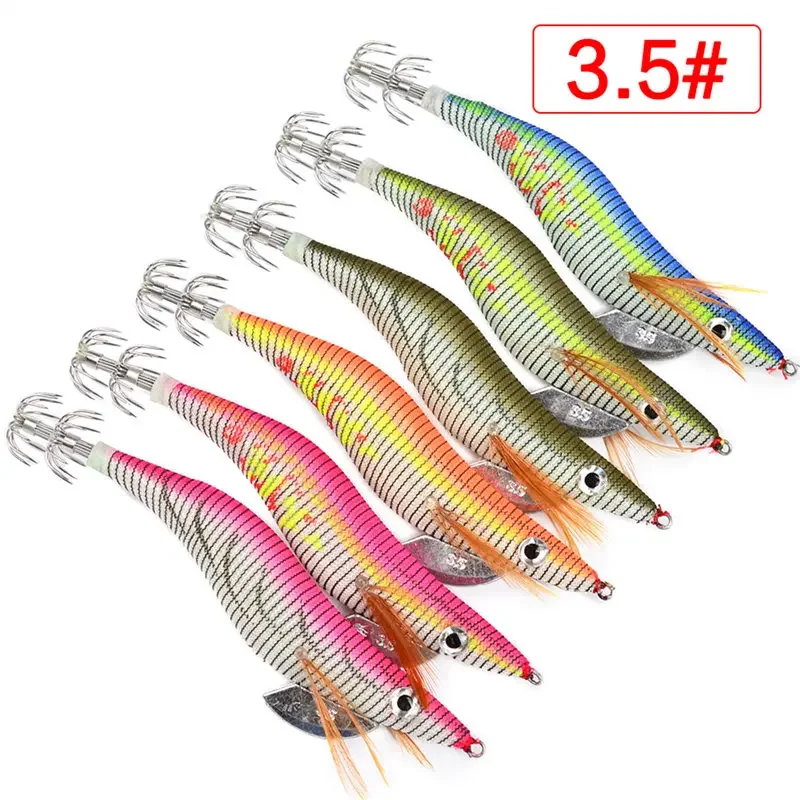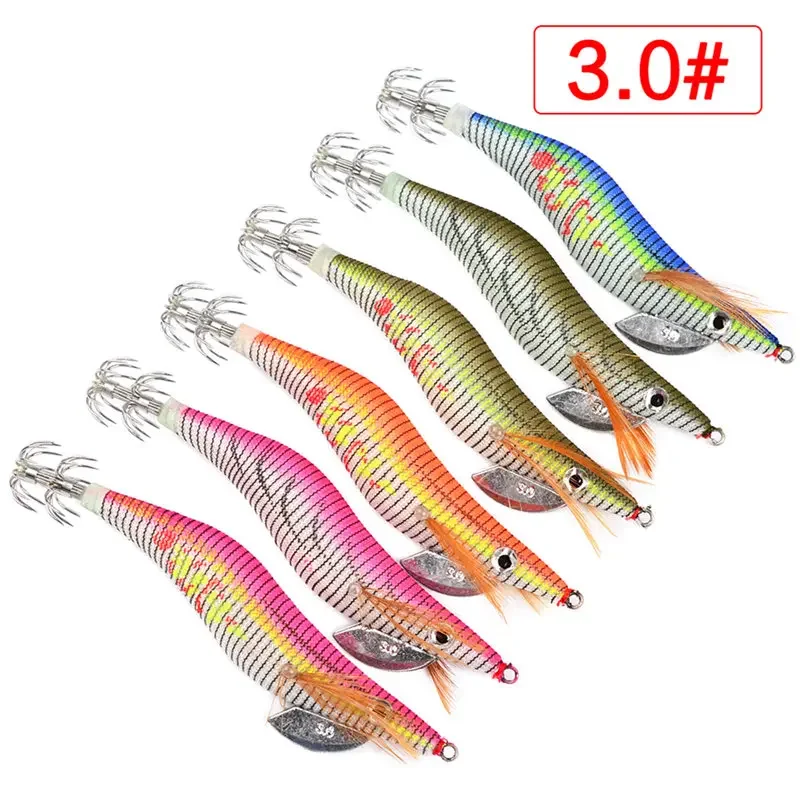 Señuelo de Pesca de calamar, anzuelo de camarón de madera, cebo Artificial 3,0 #3,5 #, aparejos de Pesca de pulpo y Sepia, 30 piezas