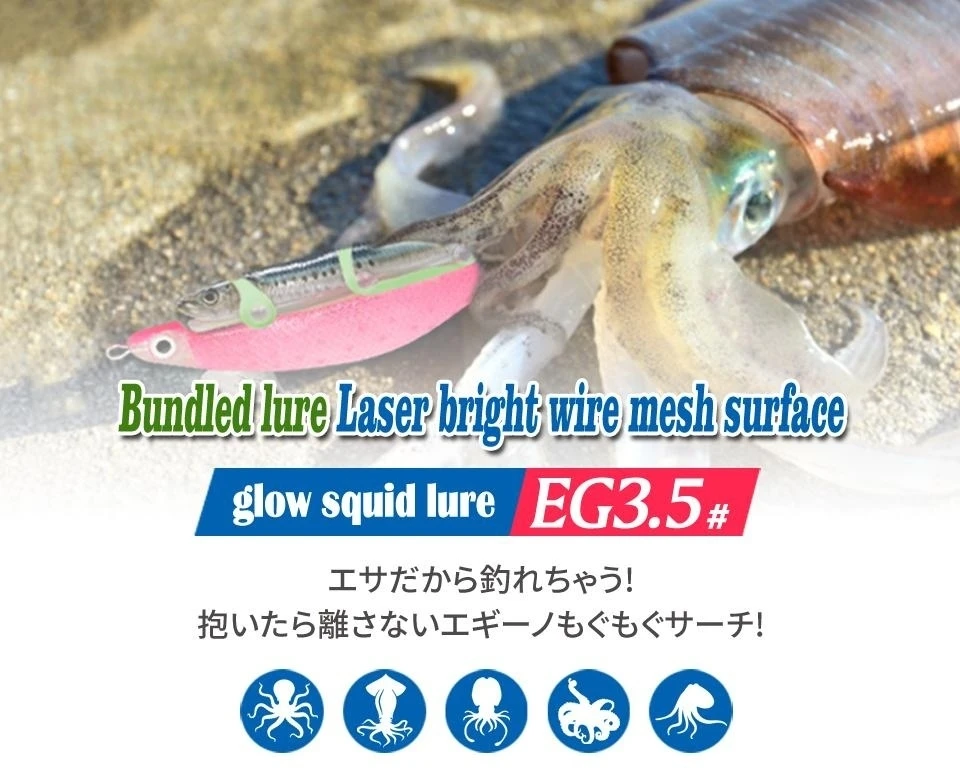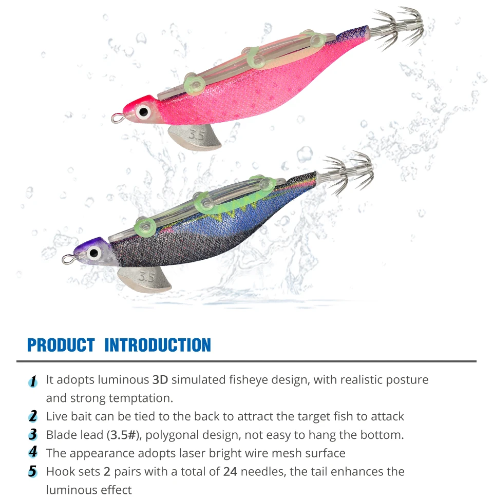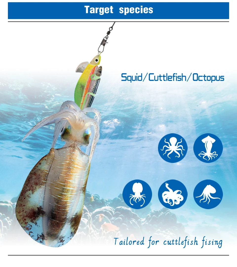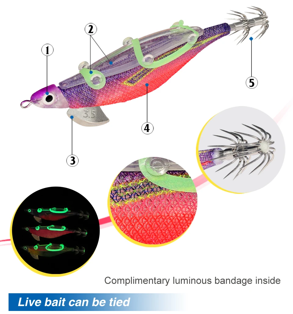 4. Gancho de calamar de doble capa con efecto luminoso mejorado en la cola
