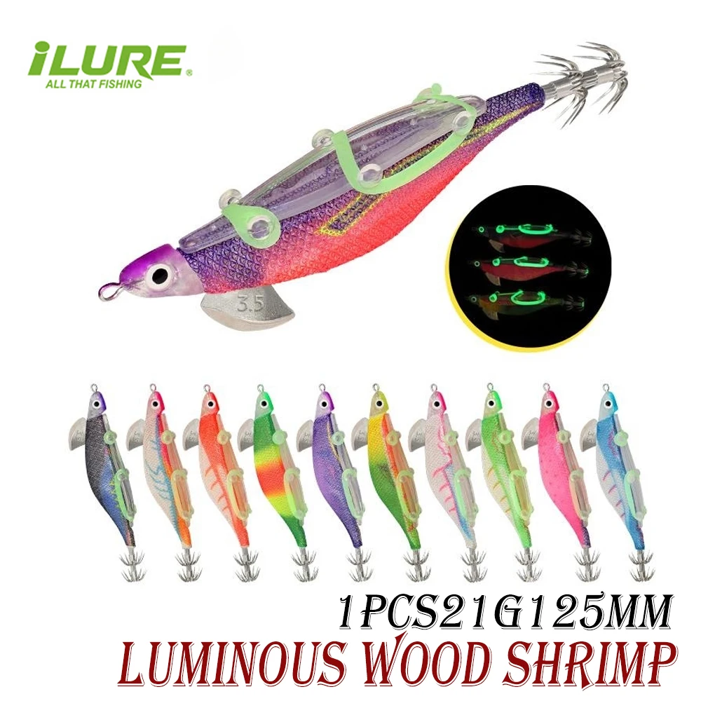 2023 nuevo señuelo de Pesca calamar Jig 3,5 #/21g/125mm Egi madera luminosa Camarón calamar anzuelo sepia pulpo cebo deshuesargo