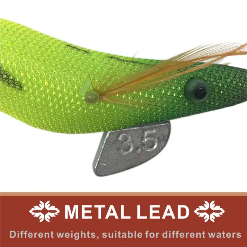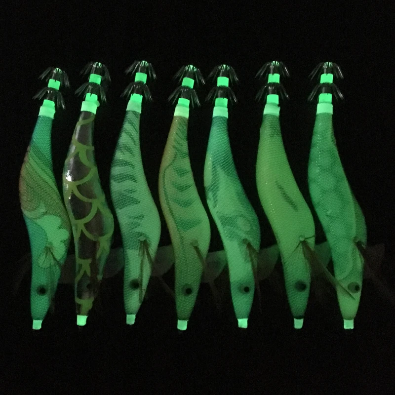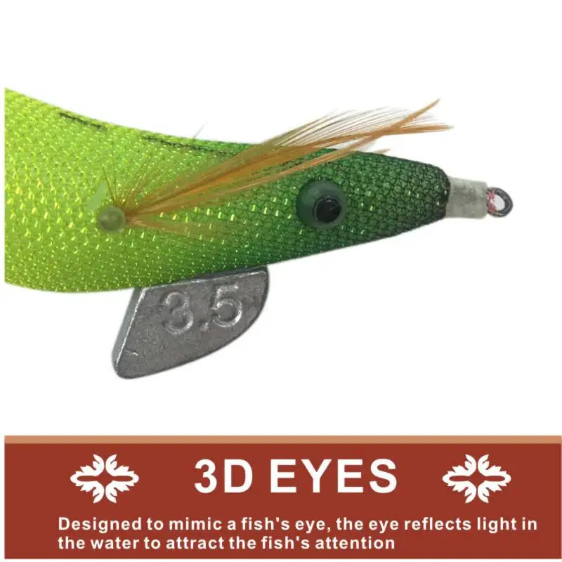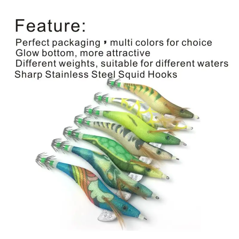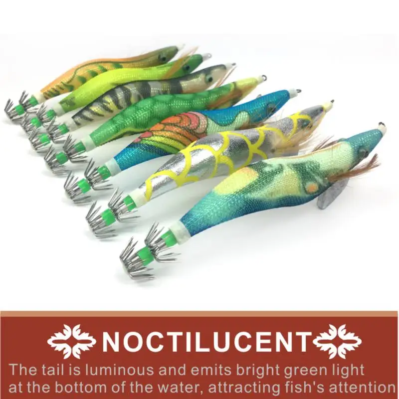 Señuelo de pesca de calamar Wobblers luminosos de 3 3,5g, señuelo de camarón de madera dura Artificial, señuelo de pesca de mar con anzuelo de calamar