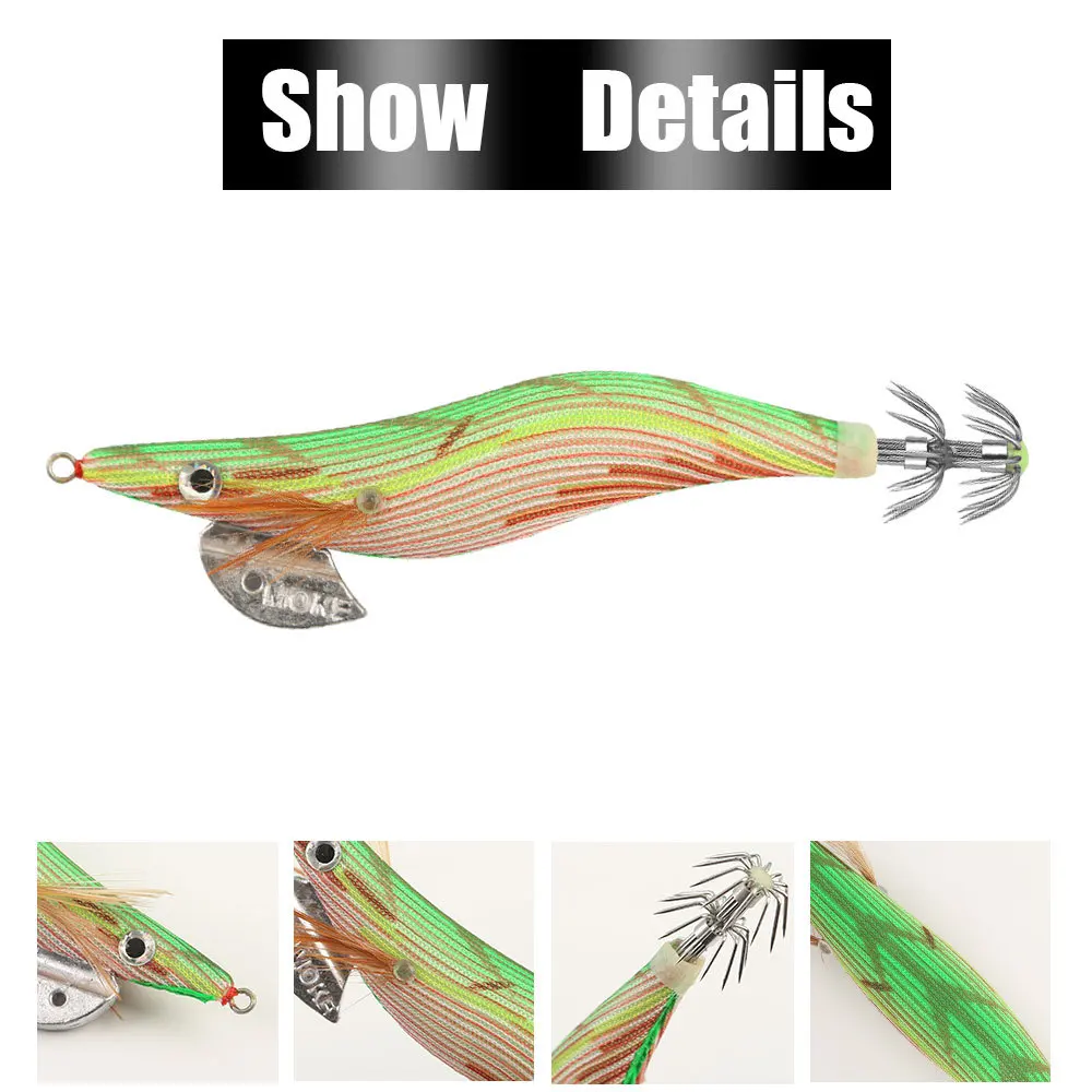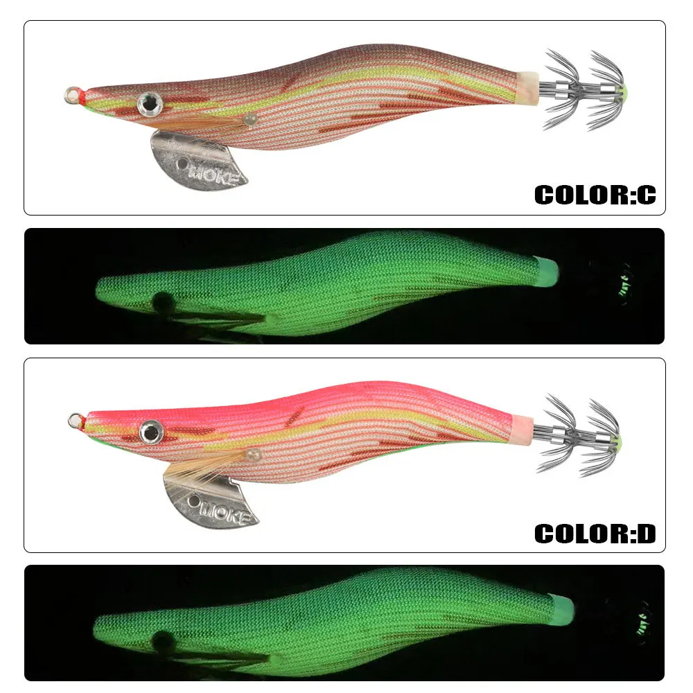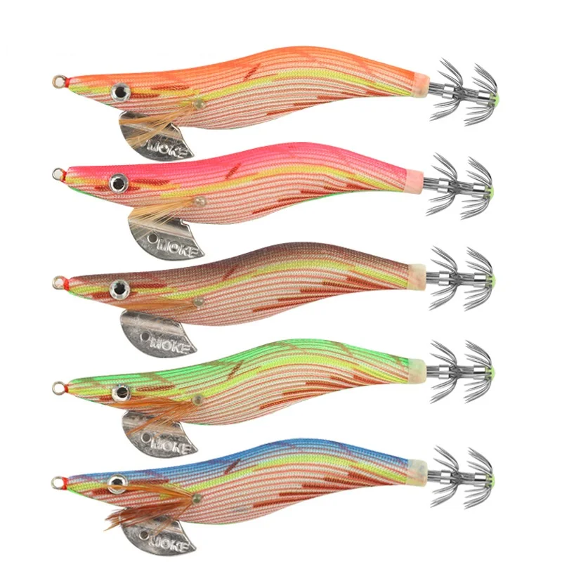 Señuelo de Pesca de calamar, anzuelo de madera luminosa para camarones, cebo Artificial, pulpo, sepia, aparejos de Pesca con sonajero, 16G, 23G