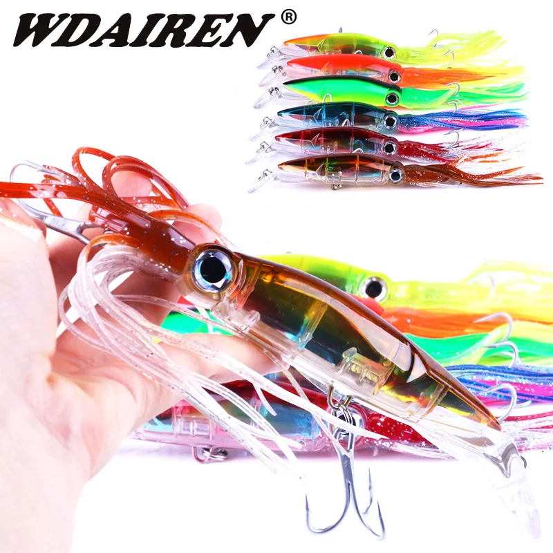 Señuelo de Pesca de Pececillo con Faldas de Calamar Biónico, Cebo Duro Artificial con Aparejo de Gancho, 14cm, 44g, 1 piezas