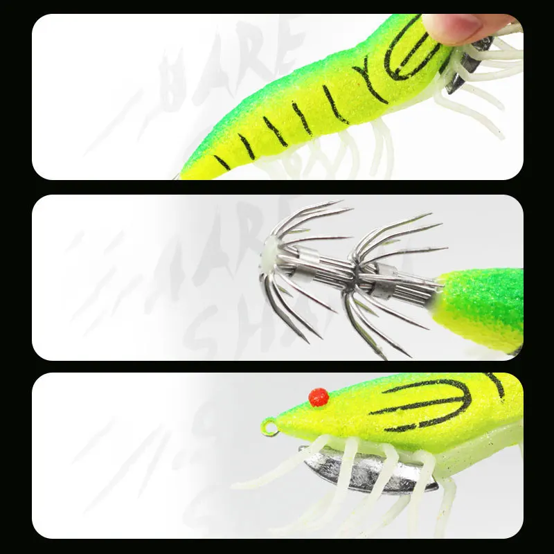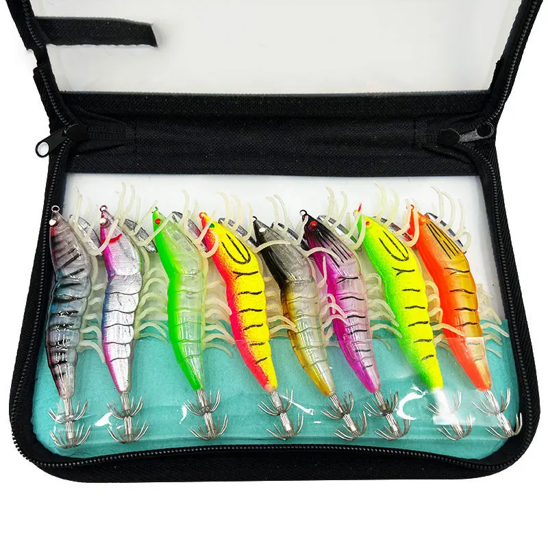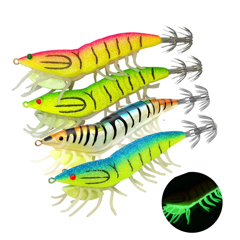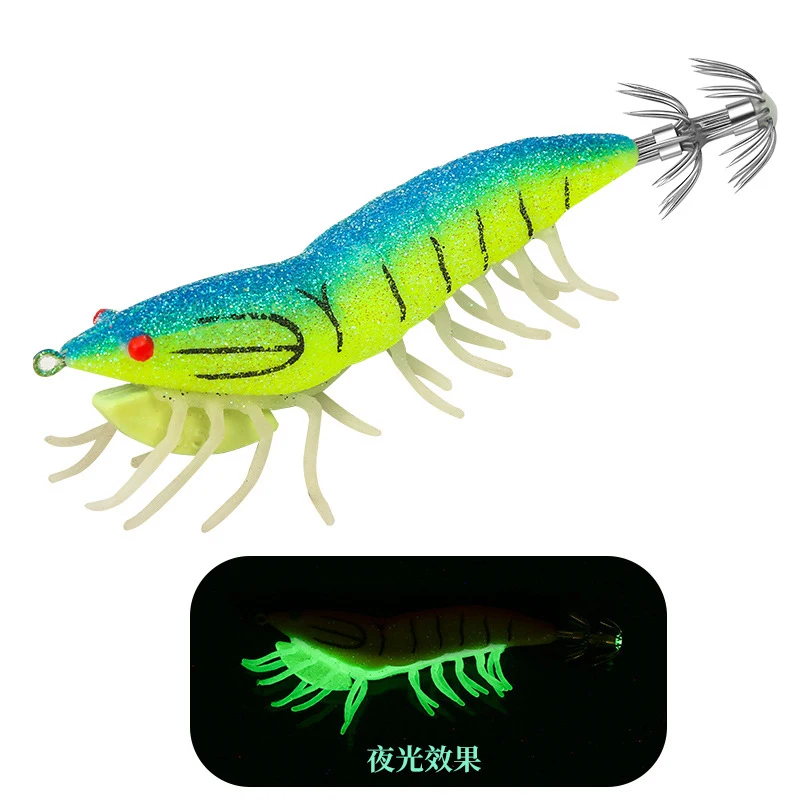 Señuelo de pesca de calamar luminoso, plantillas de camarones, ojos 3D, señuelos de pulpo, sepia, cebo Artificial, anzuelo de Jigging, 18g24g, 1 ud.