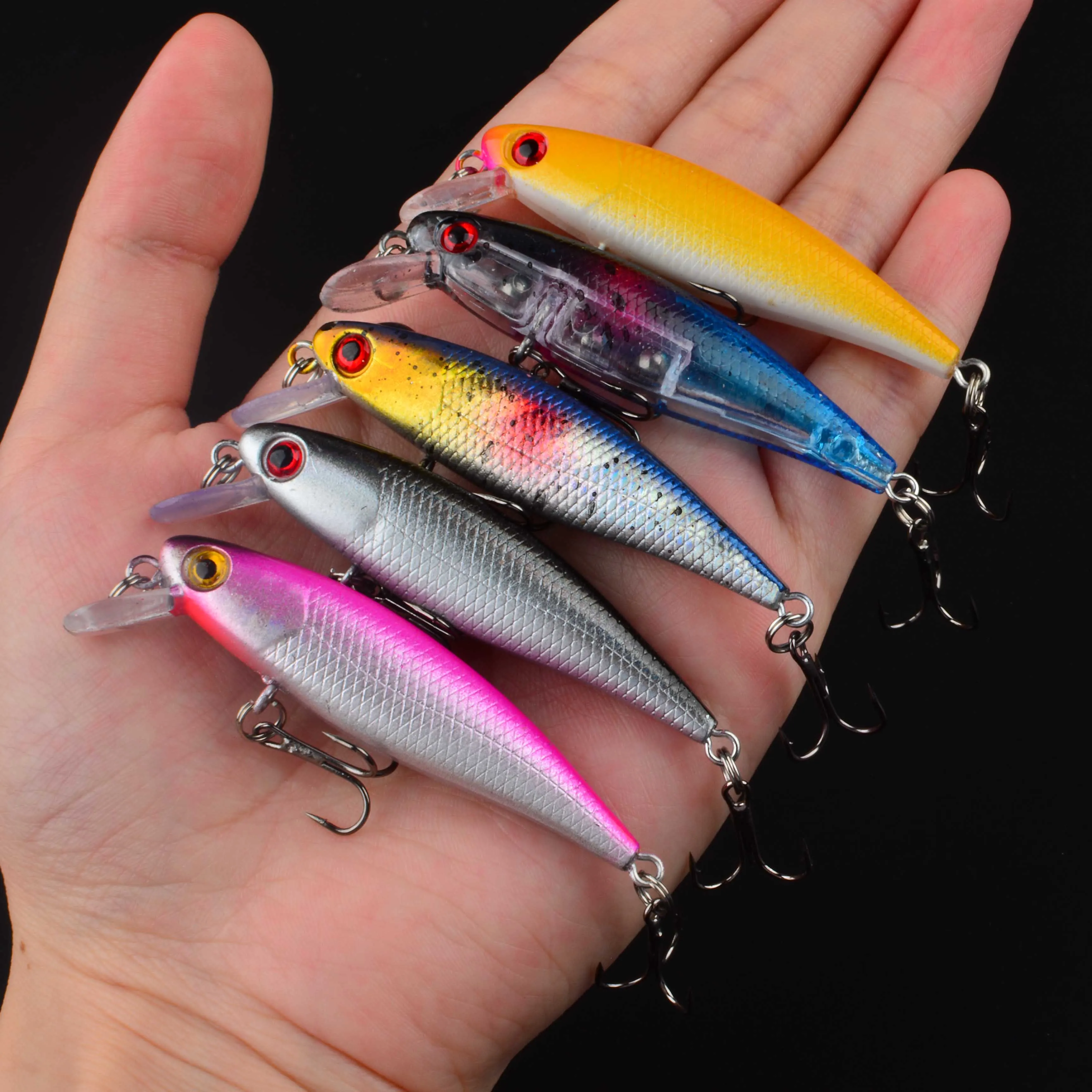 Señuelo de Pesca de calidad, señuelo pececillo con ojos 3D, cebo duro de plástico, plantilla Artificial, Wobblers, Crankbait, 1 ud.