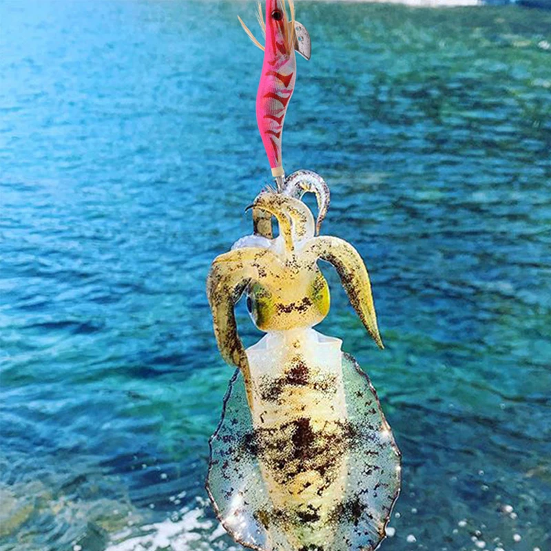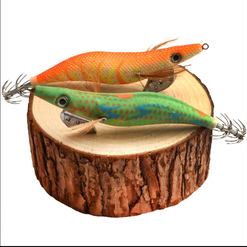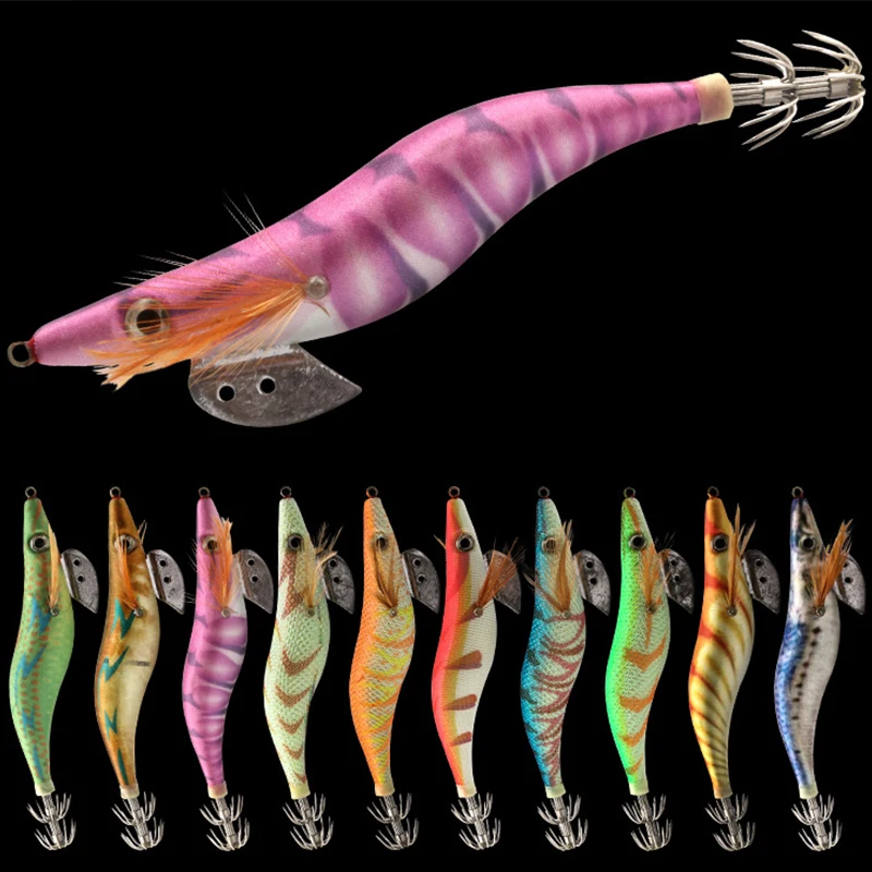 Señuelo de pesca de camarón para anzuelo de calamar/Jigs 2,5/3,0/3,5, cebo Artificial duro con ojos 3D de Sepia/lubina luminosa de madera, 10 unids/bolsa