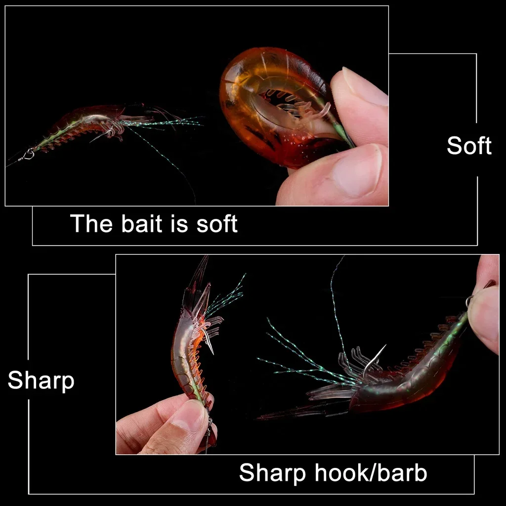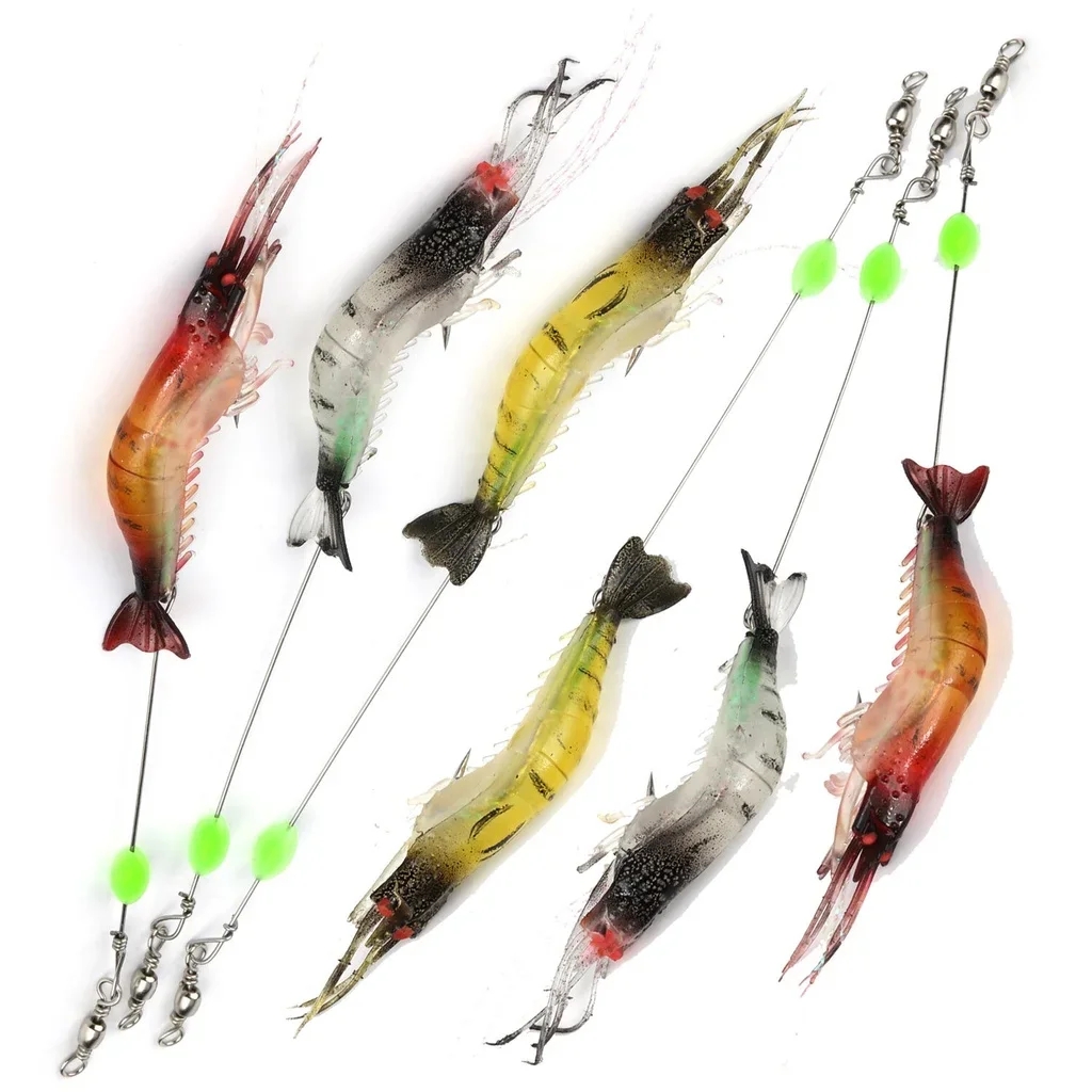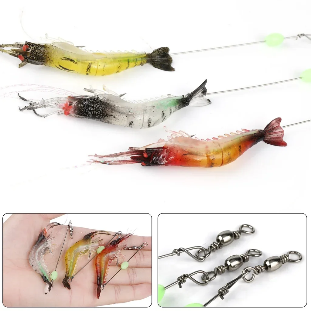 Señuelo de pesca de camarones luminoso, suave, con gancho, cuentas giratorias, cebo de pesca brillante de silicona Artificial, juego de cebo para peces, Jigging, 1 Uds.