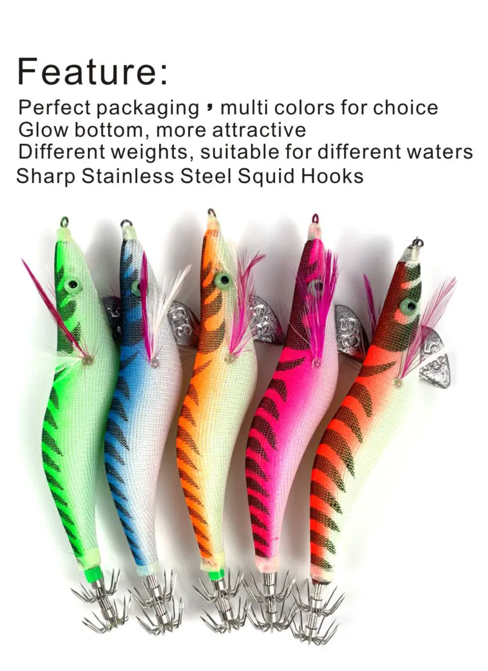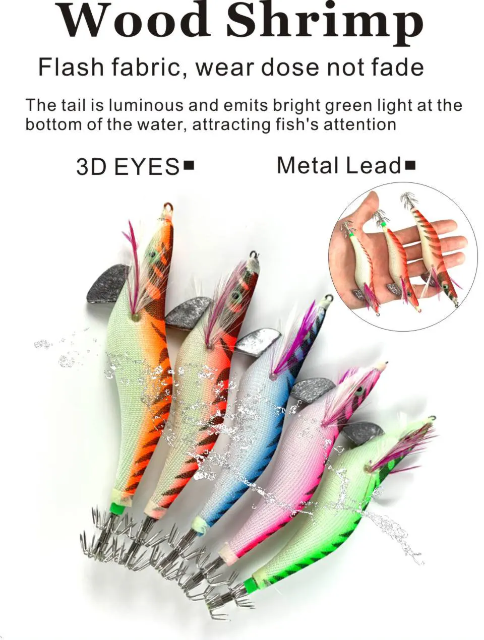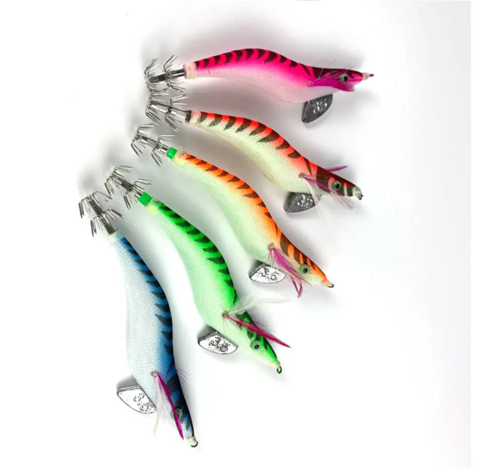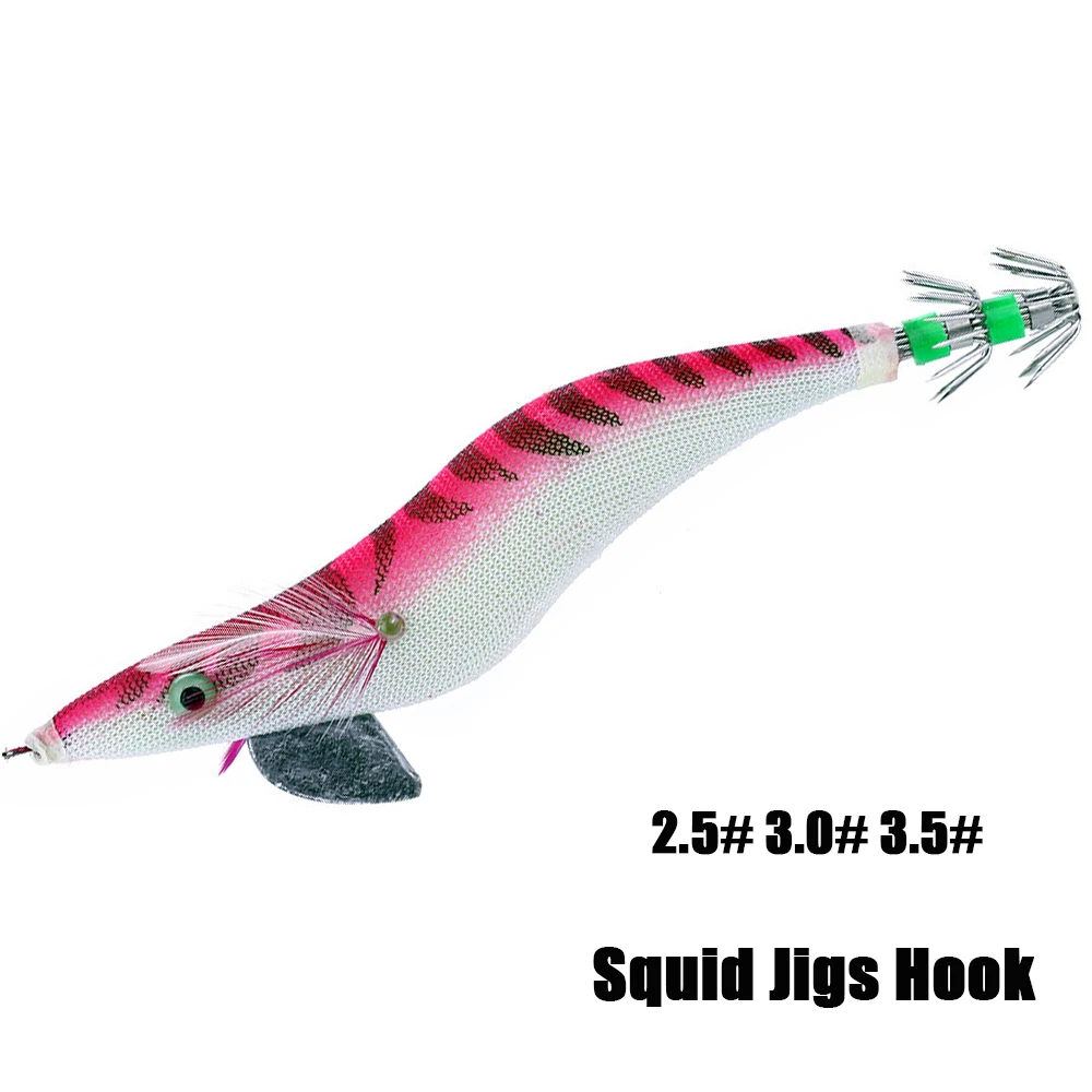 Plantilla luminosa de calamar Topline para pesca, señuelo de madera para camarones, señuelos de calamar, setos, señuelos de madera para camarones con anzuelo de madera 2,5 #3,0 #3,5 #