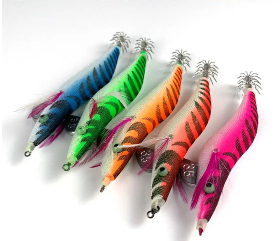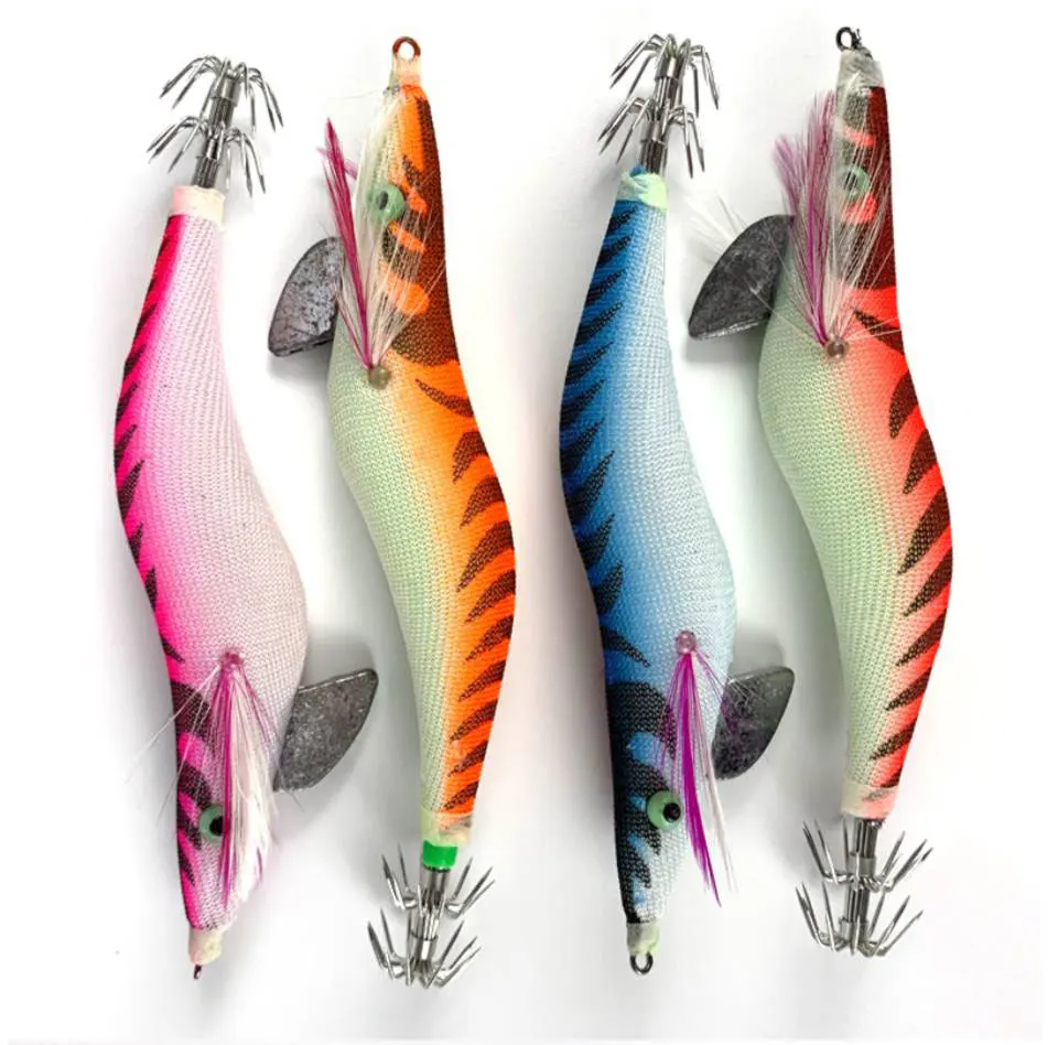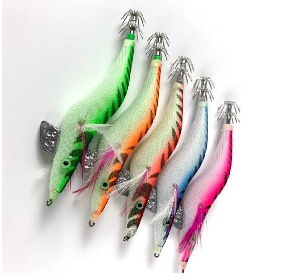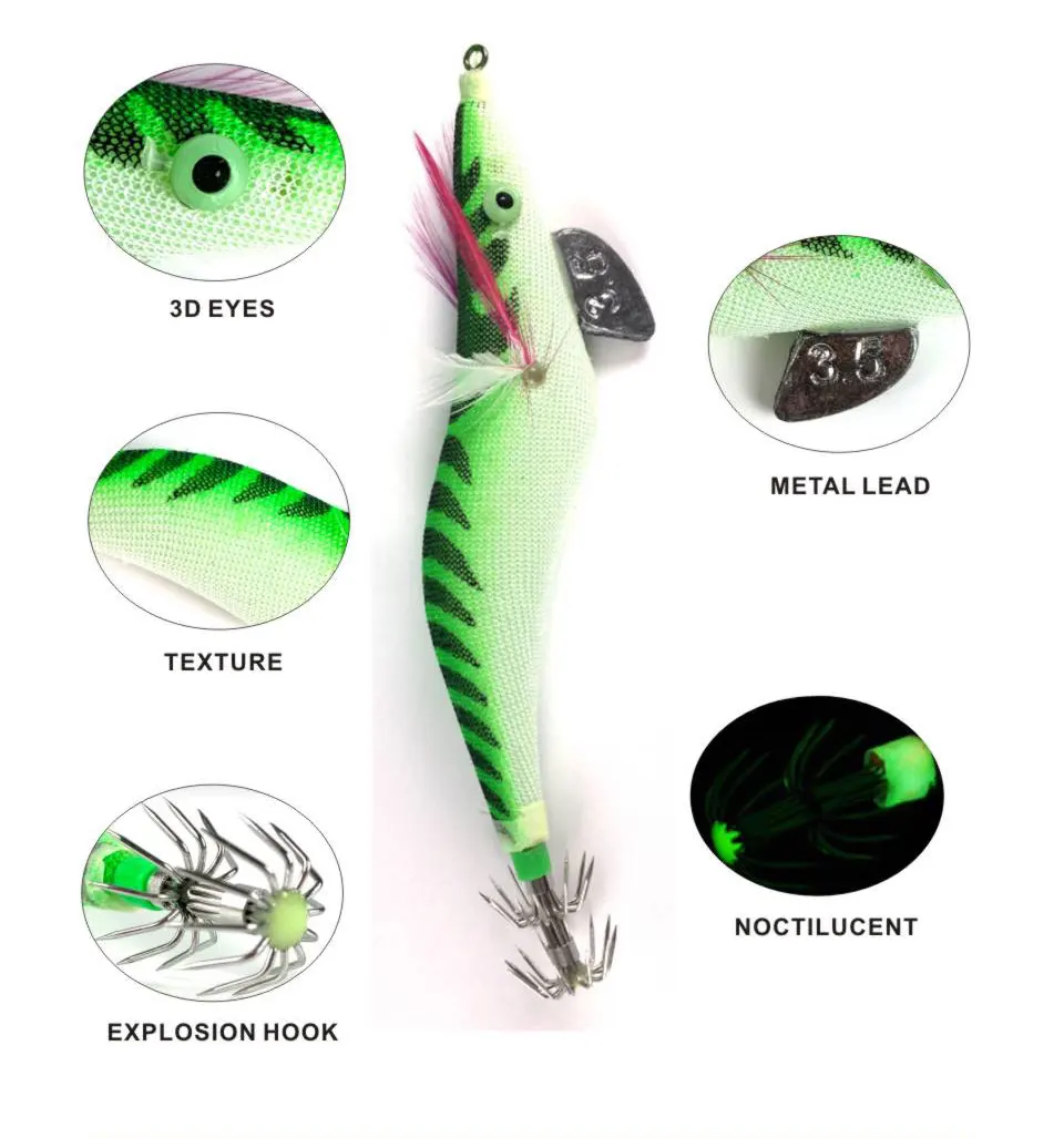 Plantilla luminosa de calamar Topline para pesca, señuelo de madera para camarones, señuelos de calamar, setos, señuelos de madera para camarones con anzuelo de madera 2,5 #3,0 #3,5 #