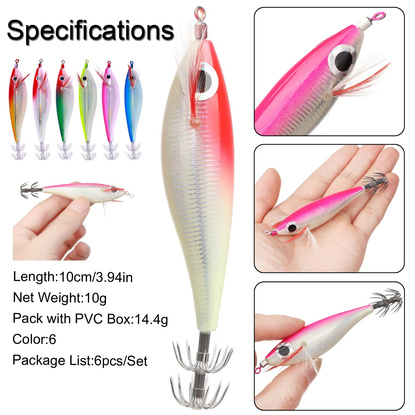 Señuelo de pesca de camarones, plantilla de calamar, camarones de madera Artificial, anzuelo de calamar, señuelos de sepia, cebos de pulpo, 10CM, 10G
