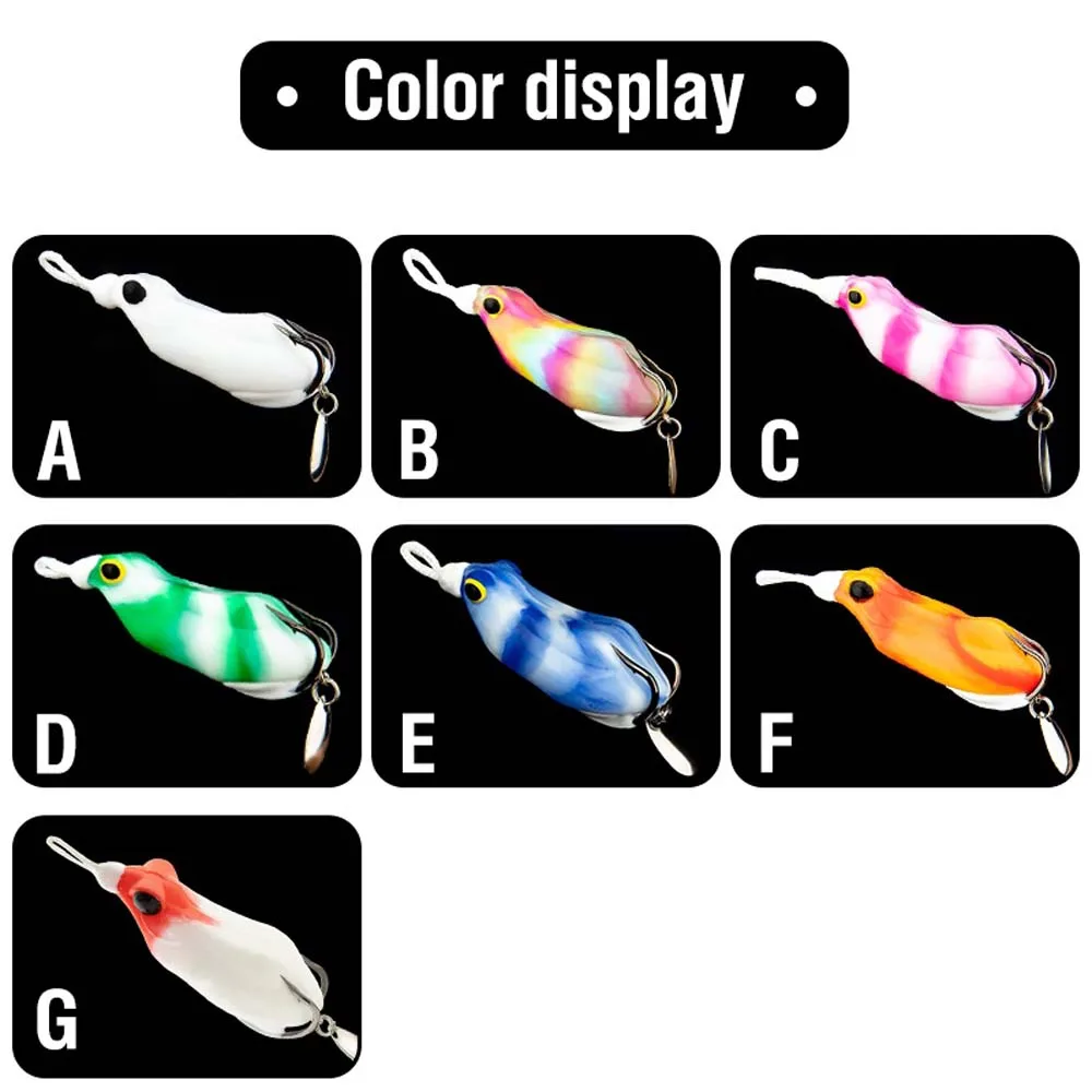 Descripción :Longitud: 6,5 cmPeso: 15 gGanchos: Triple GanchoTipo: Señuelo de plástico blandoColores: 7 coloresProfundidad: flotantePaquete:Señuelo de pesca * 1 ud.