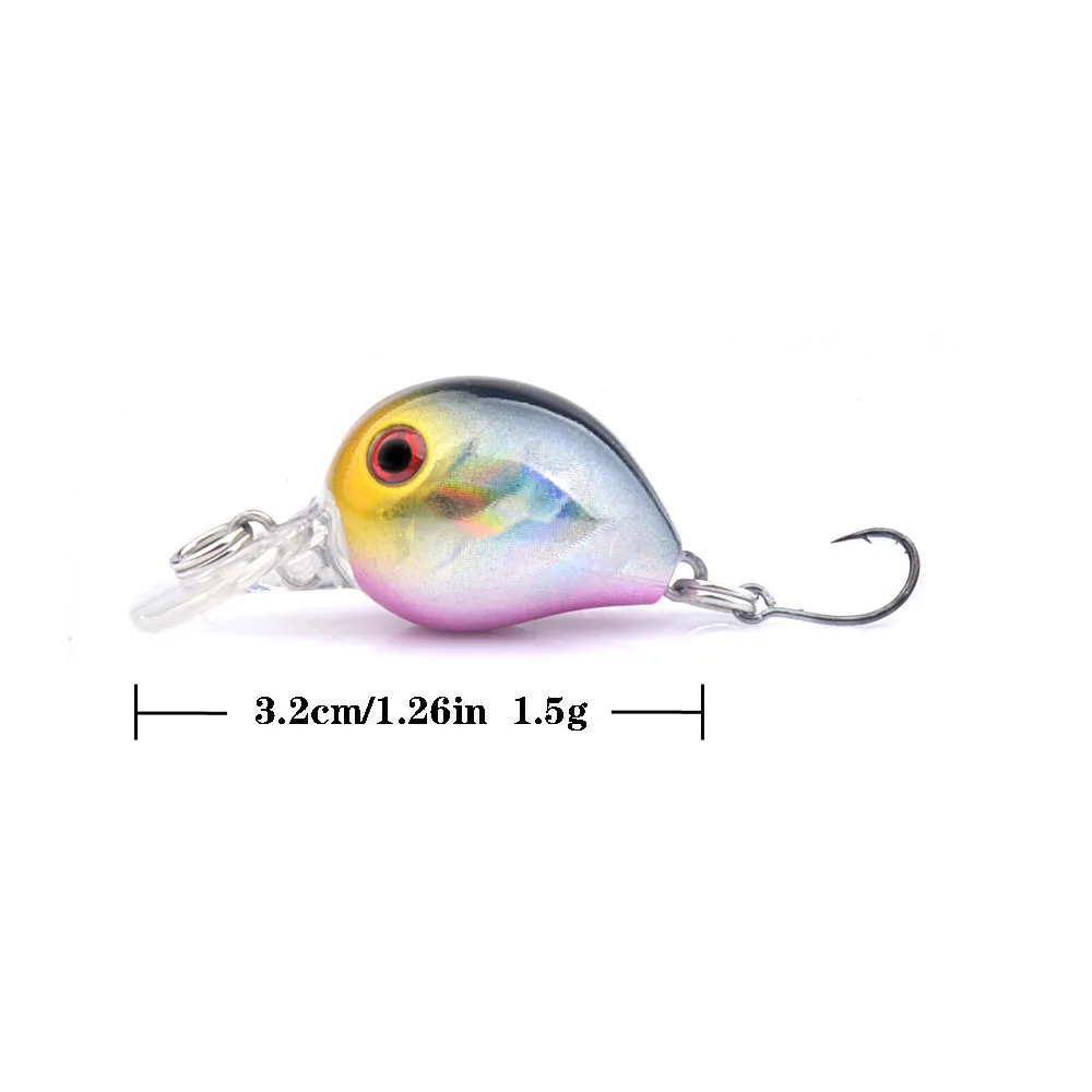 Señuelo de pesca de carpa Wobbler CrankBait, un solo gancho, Rock Luya, láser falso, pequeño hombre gordo, agua flotante, 3,2 CM/1,5G, nuevo