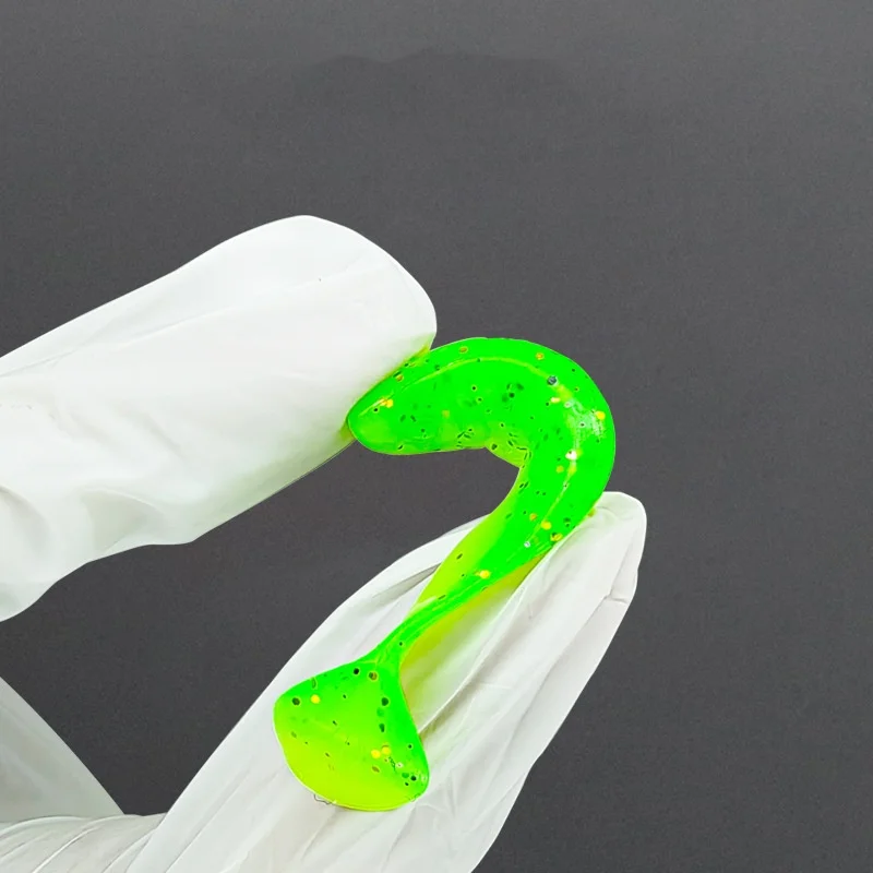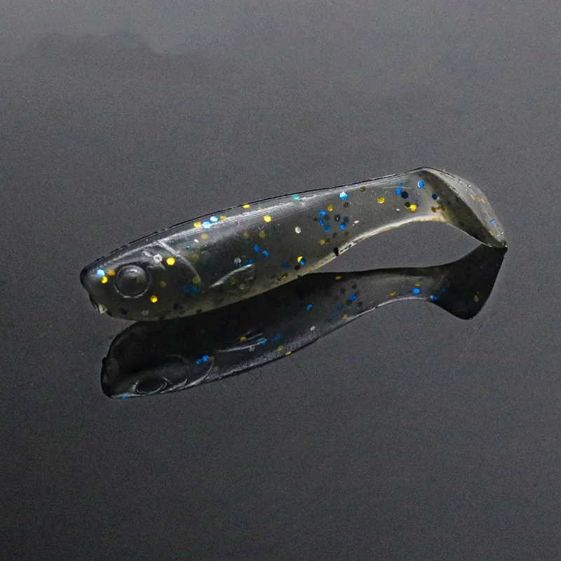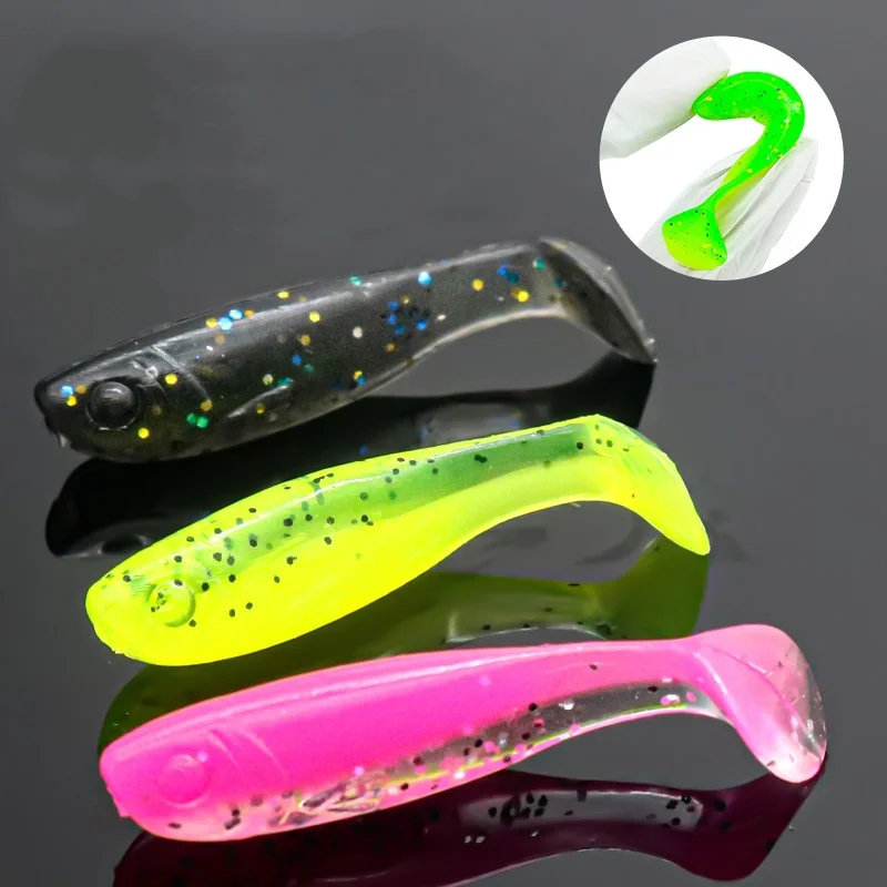 Señuelo de pesca cebo blando 3D pez gordo pequeño 4cm 5cm cola en T gusano Drop-Shot señuelos artificiales doble Color larva 12-16 piezas bolsa en venta