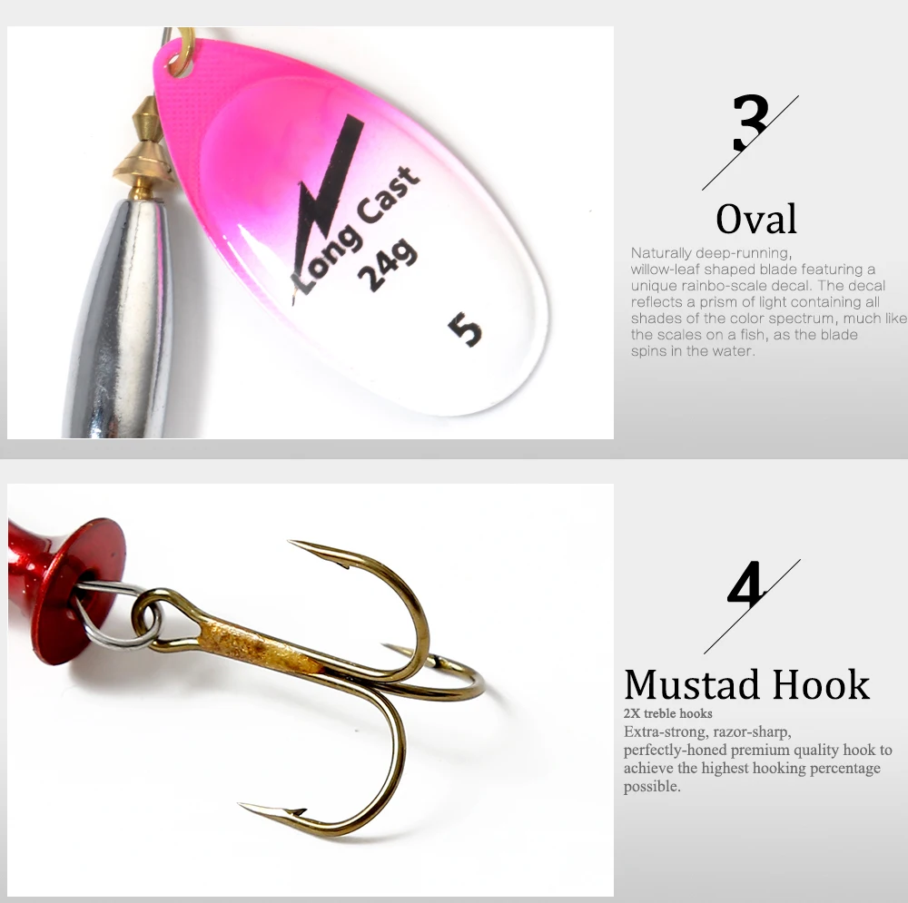 Señuelo de pesca con cebo giratorio de fundición larga, anzuelo triple, 18,2g, 23,5g, señuelo con cuchara de Metal, cebo duro, Wobblers artificiales para curricán, Lucio