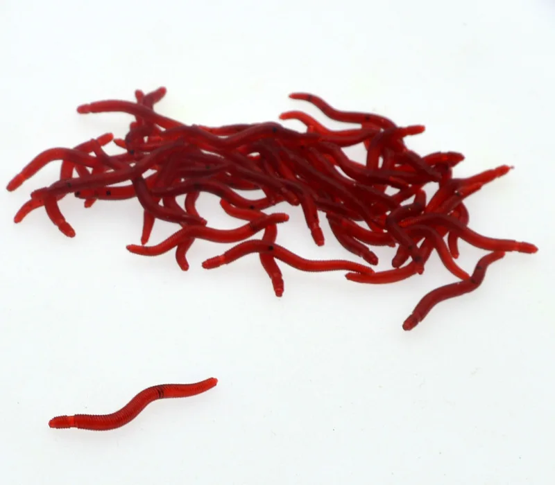 Señuelo de pesca, cebo rojo para lombriz, aparejos suaves, cebos para carpa, lote de 3,5 cm, 50 piezas