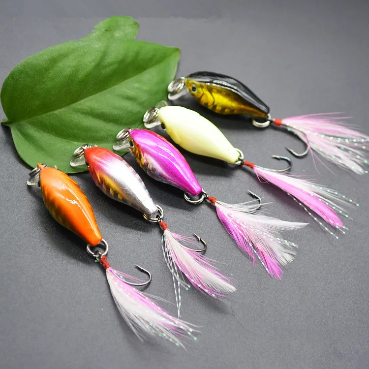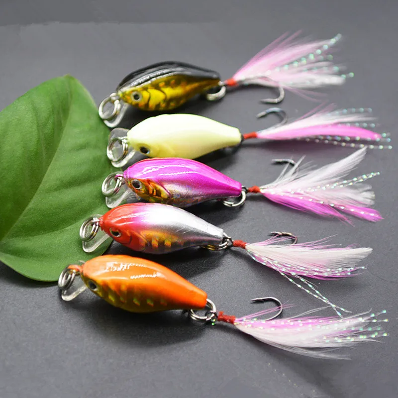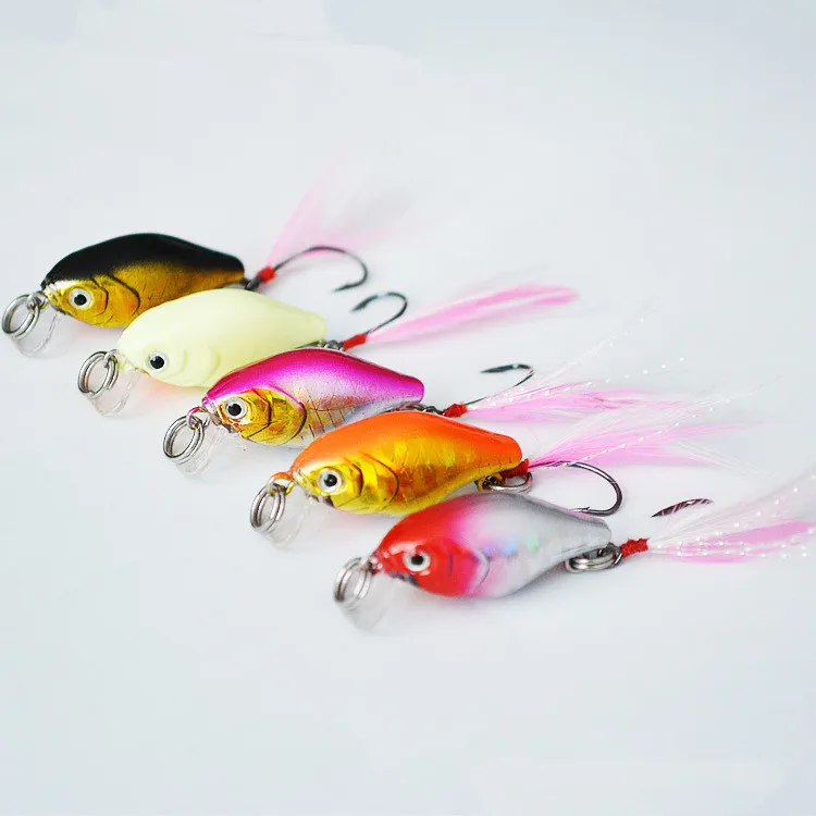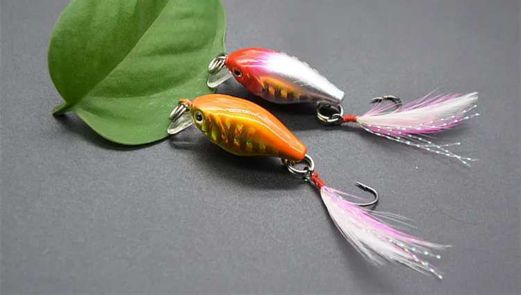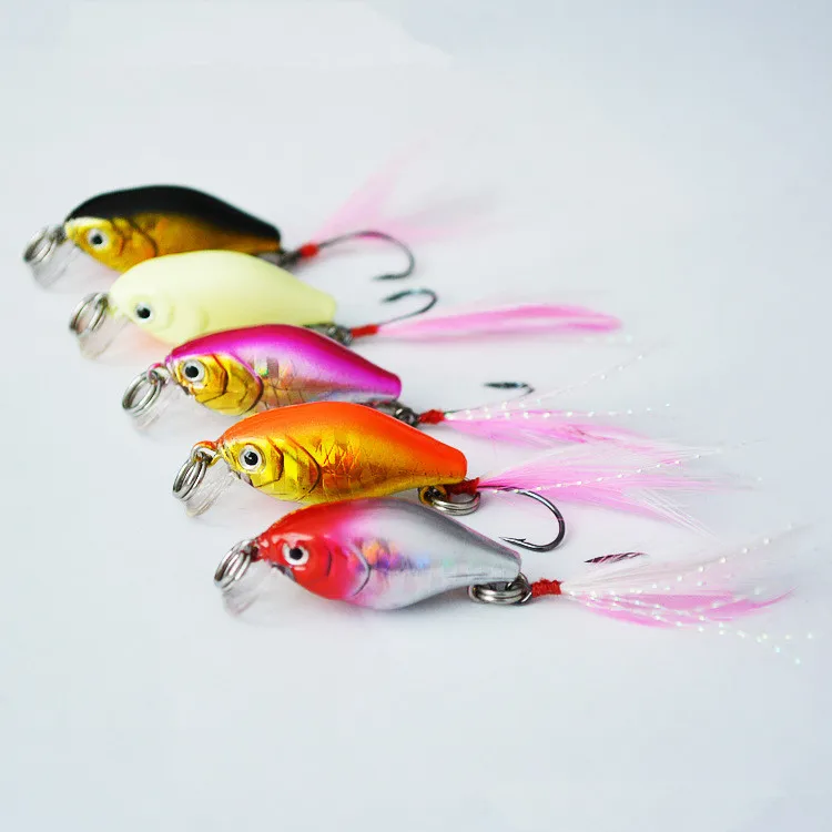 Señuelo de pesca, cebo de manivela con plantilla de plumas, anzuelo único, señuelos duros artificiales, Wobblers brillantes, 3,5 cm/2g, 1 pieza en oferta