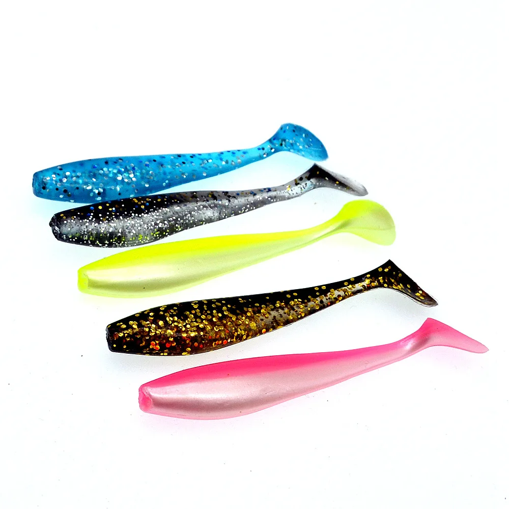 Señuelo de pesca con cebo suave de doble Color, 8,5 cm/4,5g, señuelos artificiales de gusano de cola en T individual, bolsa de 5 piezas