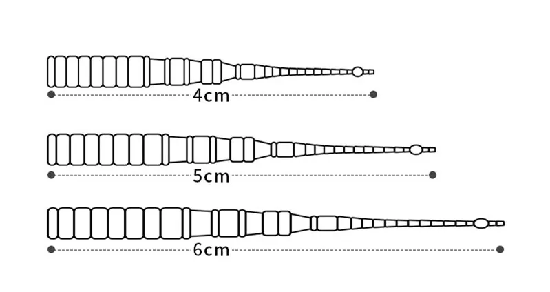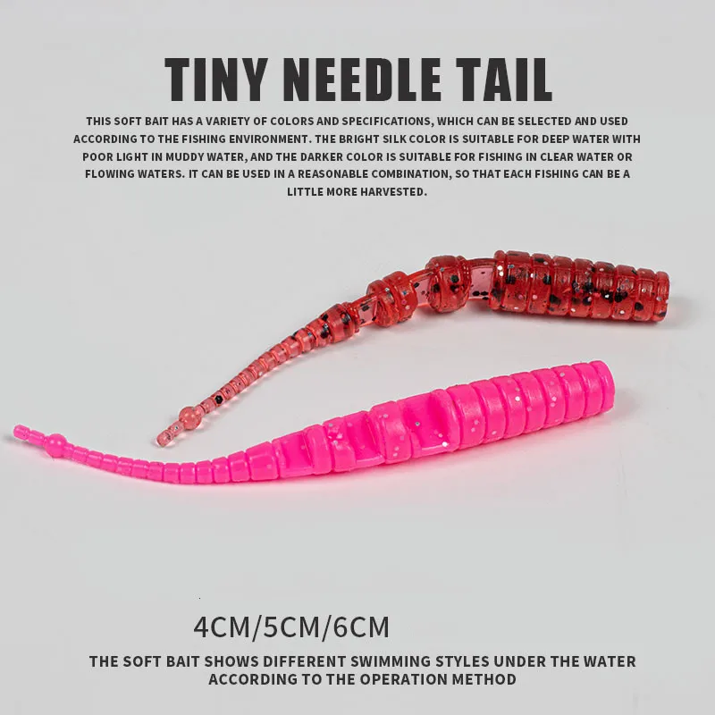 Señuelo de pesca, cola de aguja pequeña, cebo suave, raíz de gusano, 4cm, 5cm, 6cm, cebo conjunto, señuelos artificiales, Culter Bass, 30-40 unids/bolsa, venta