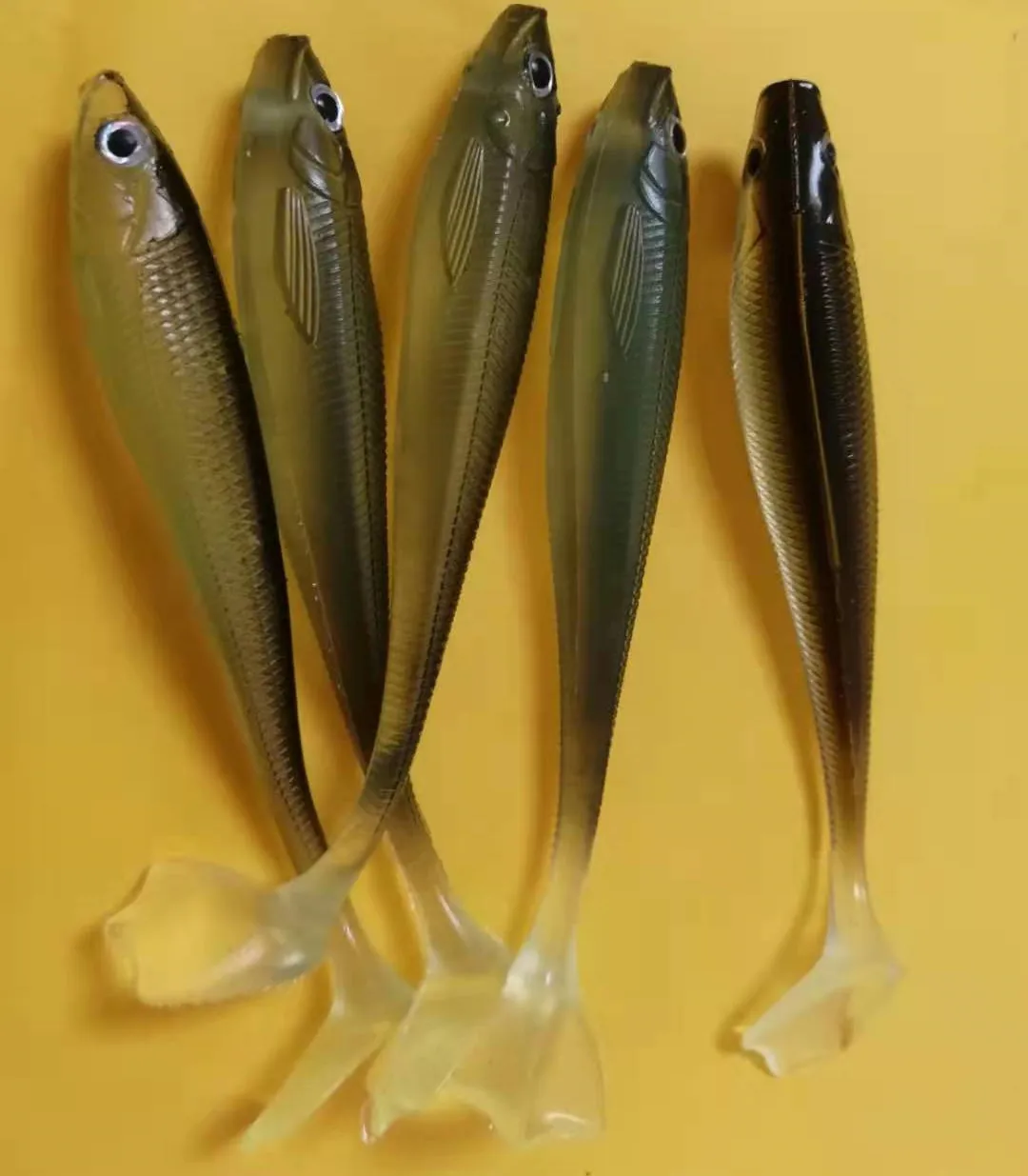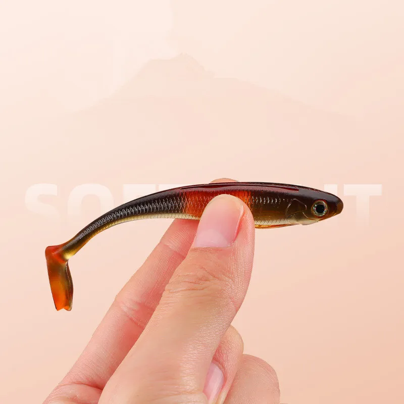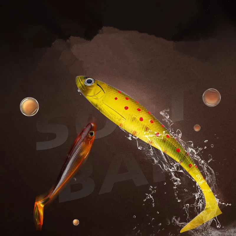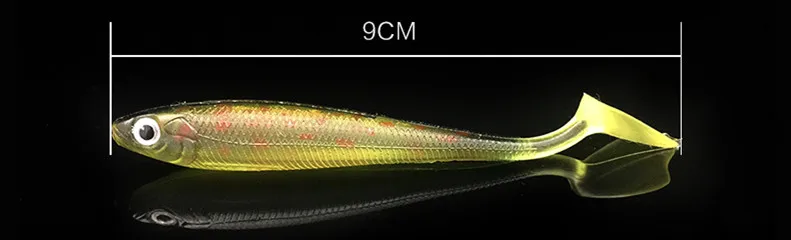 Señuelo de pesca de cola en T, cebo Artificial de PVC, 9cm/5g, Arco Iris, ranura trasera, 5 unidades por lote