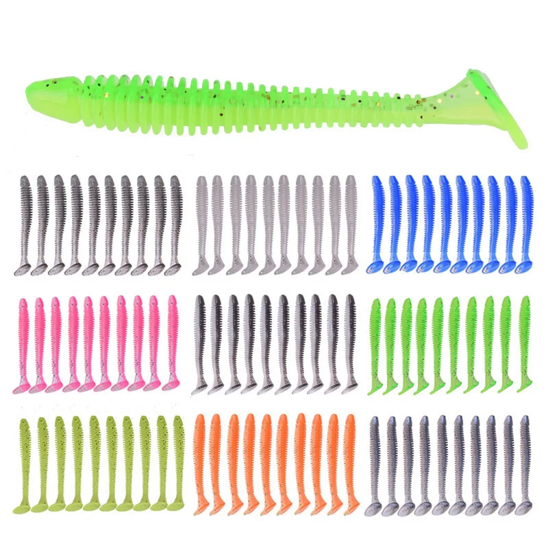 10Pcs Worm T Tail Soft Bait Jig Wobblers Fishing Lure 50MM 70MM Double Color Silicone Aritificial Baits Bass Pike Pesca Tackle