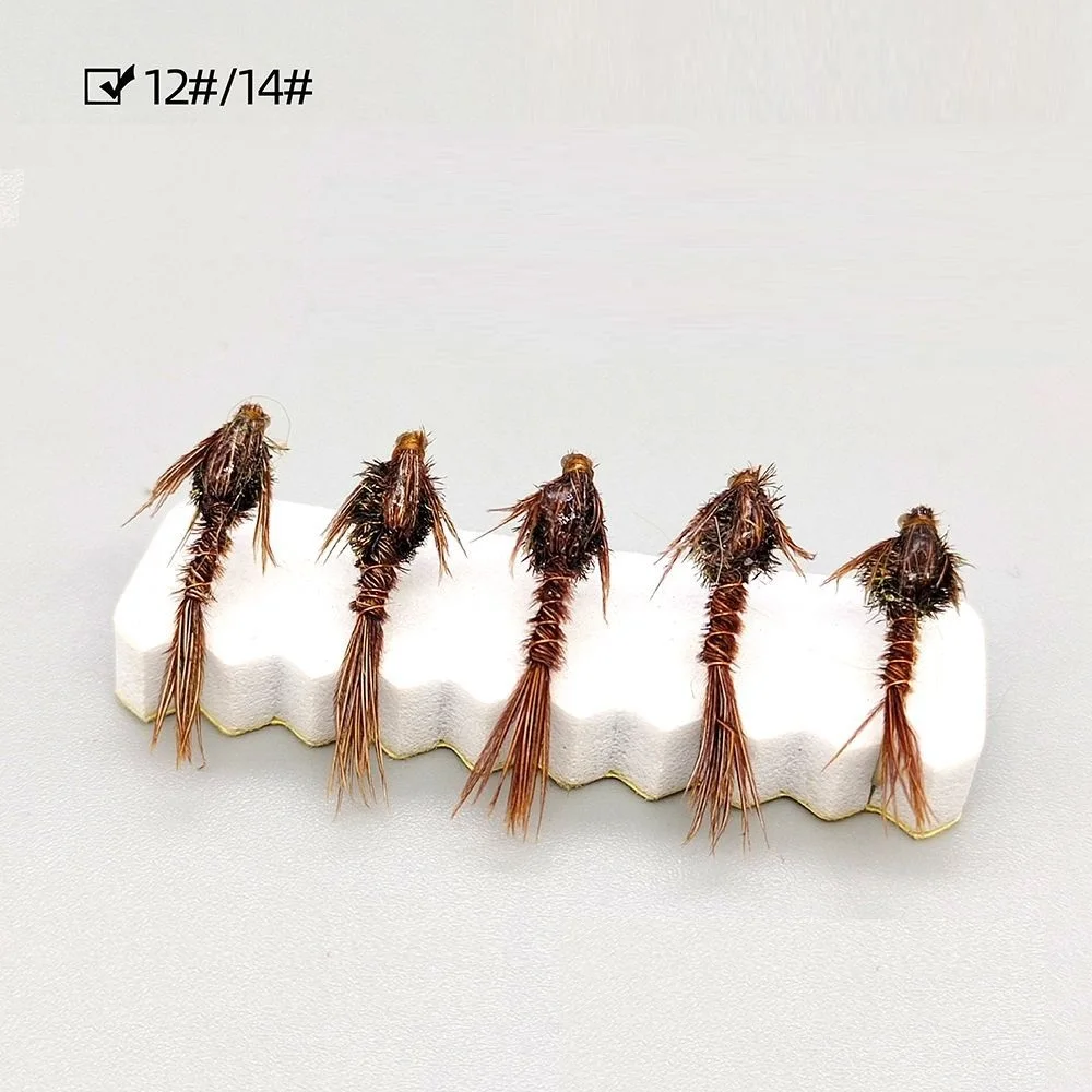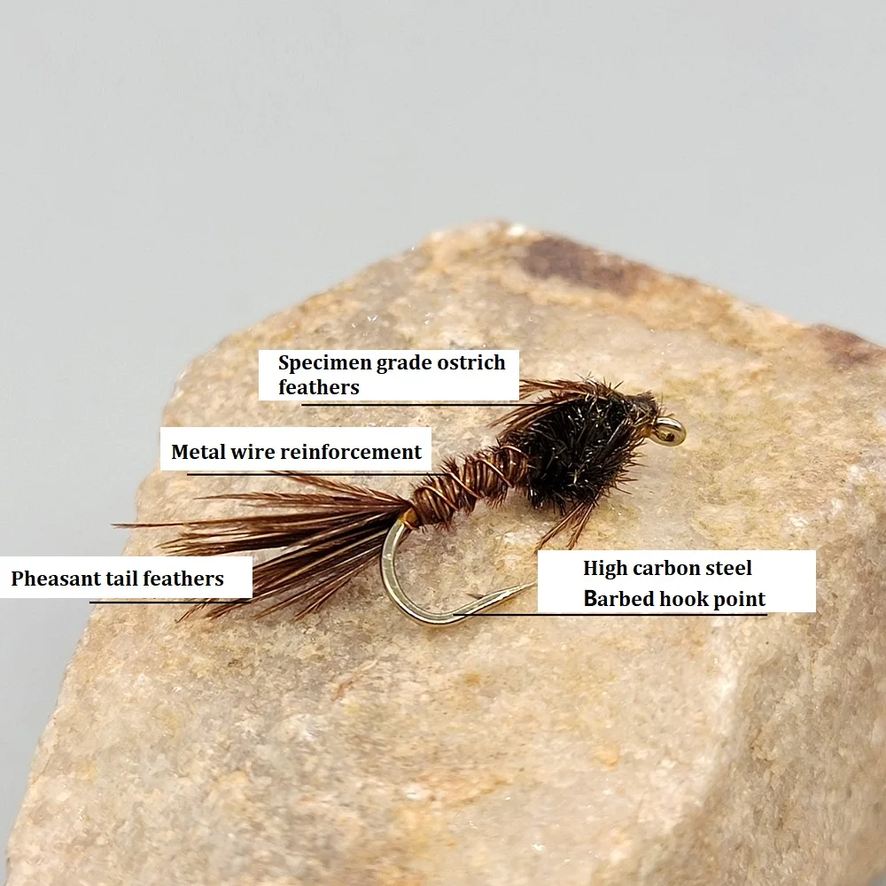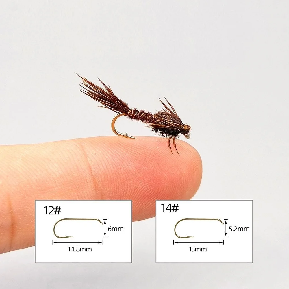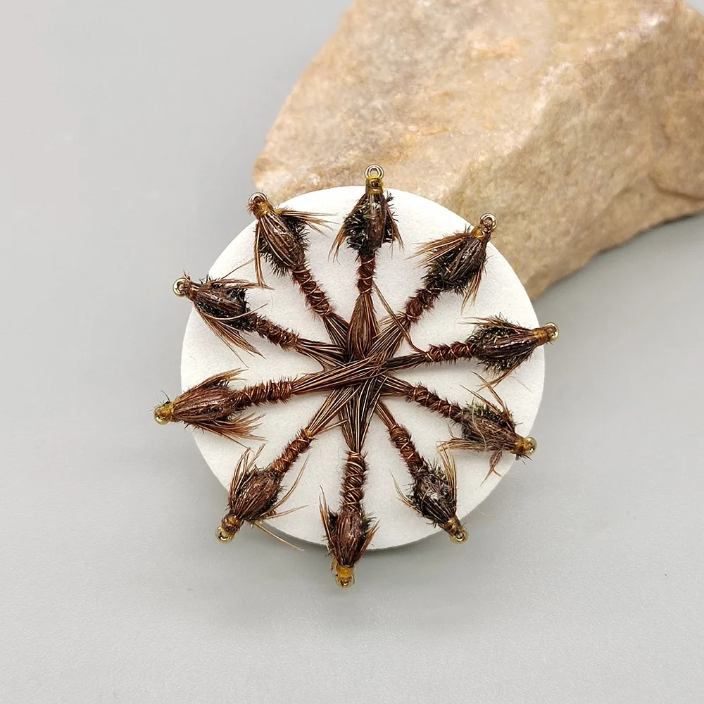 Juego de 10 moscas de pesca con mosca de Ninfa de cola de faisán atadas a mano-anzuelo tamaño 12