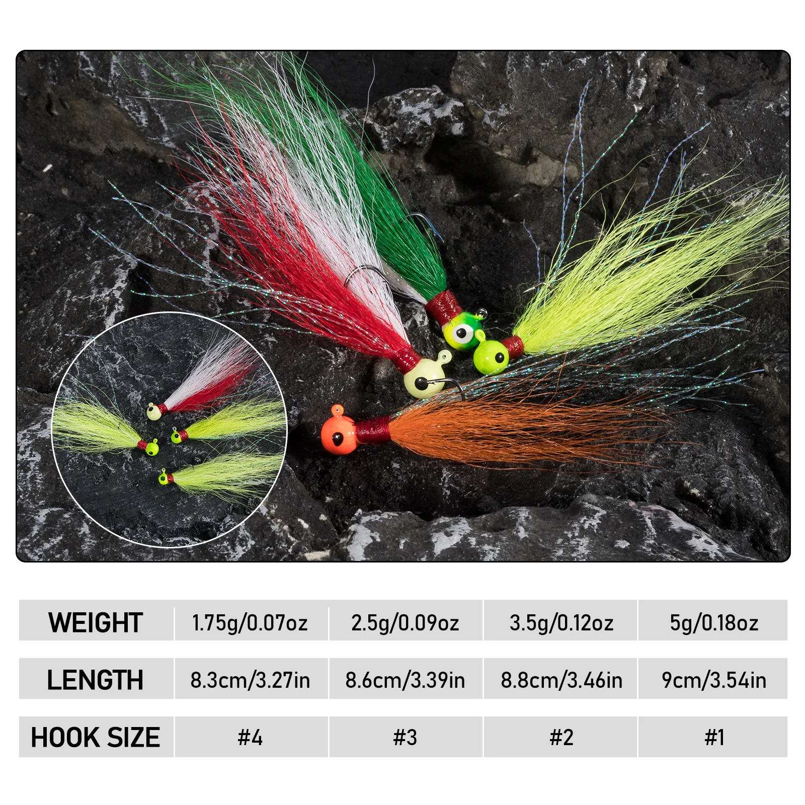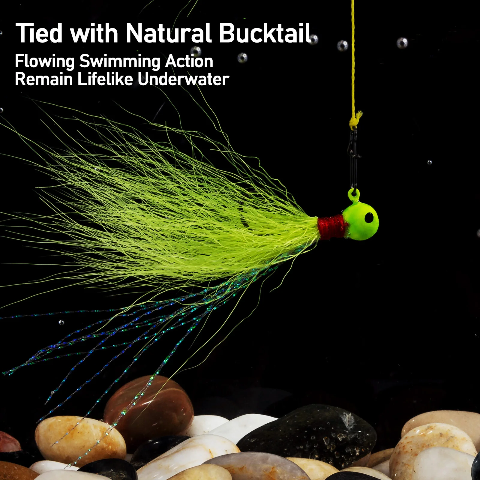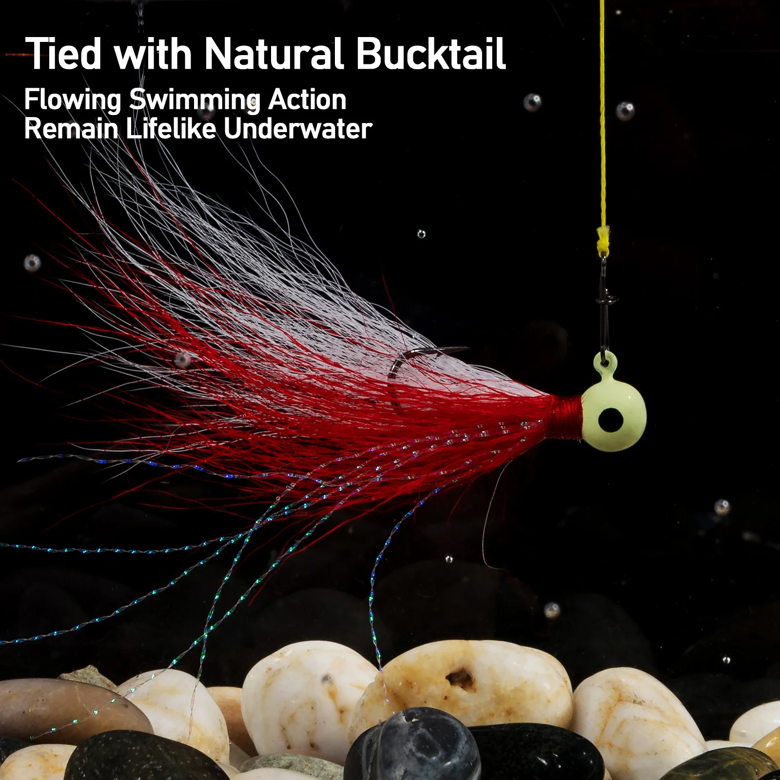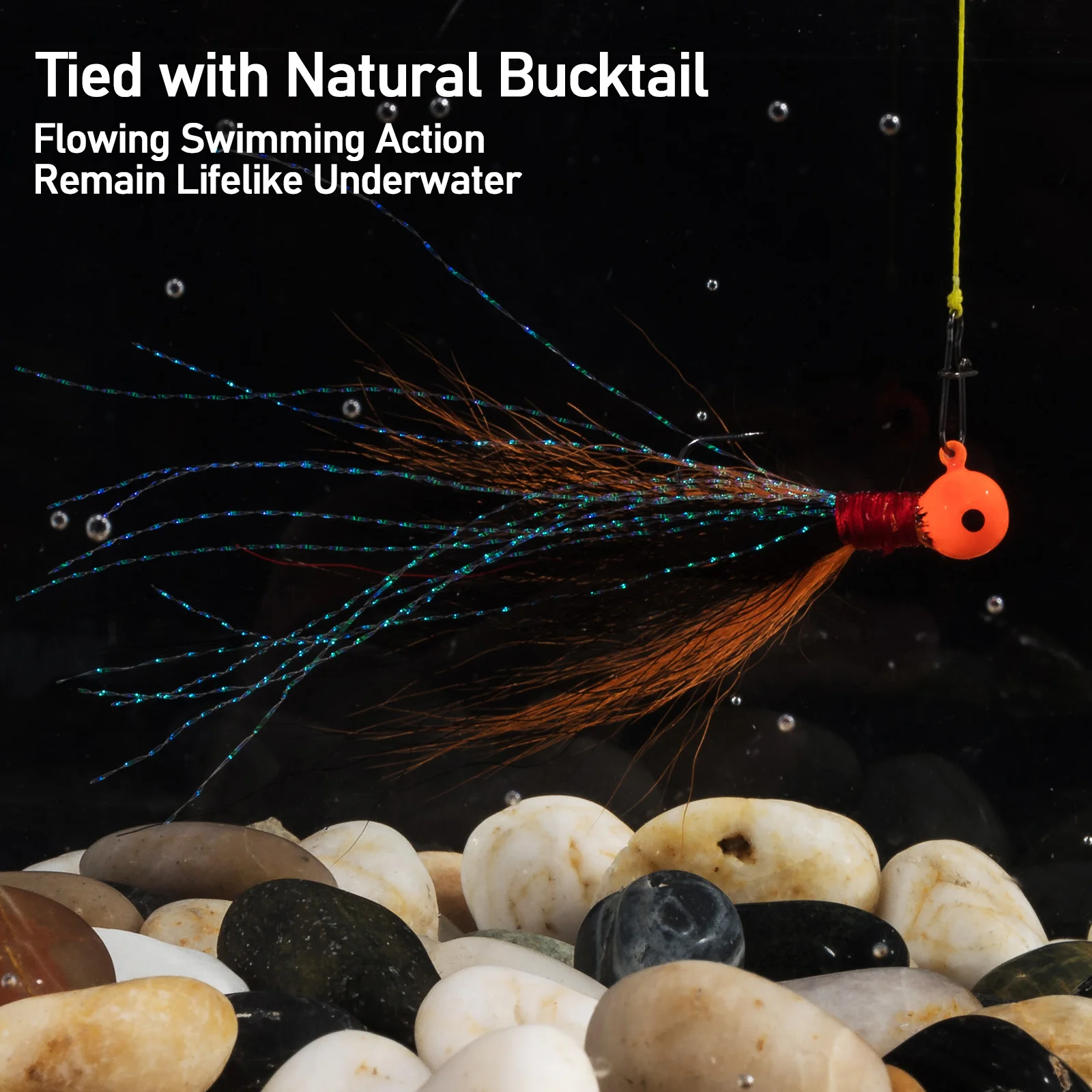 4. Bucktail natural: el cabello resistente tiene un color brillante, lo que permite una acción de natación más natural bajo el agua para lograr el máximo atractivo.