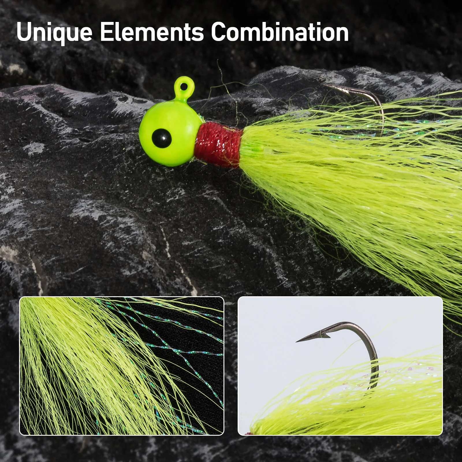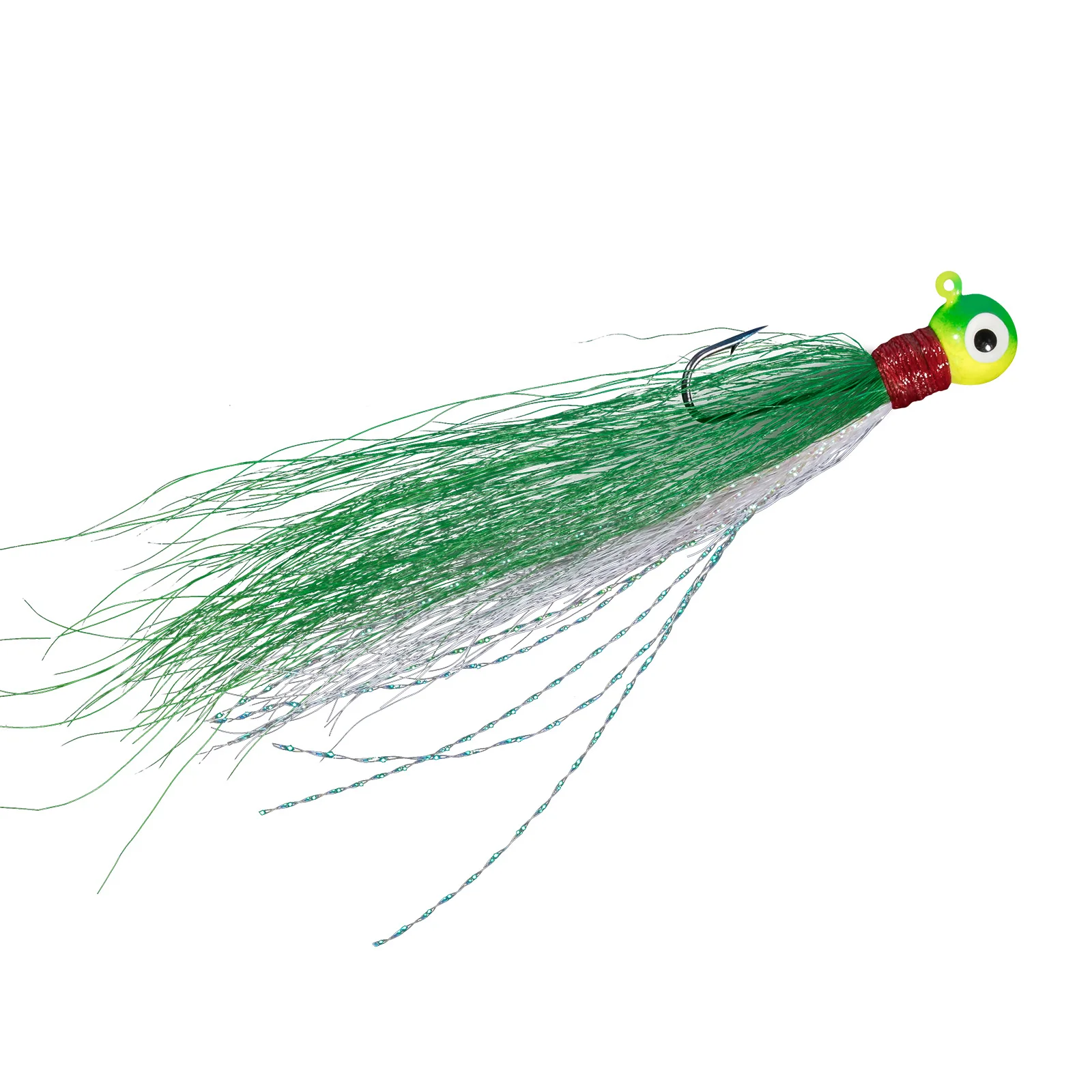 1. Combinación única: una combinación de cabeza de bola y pelo de cola de pescador, que incorpora las ventajas de todas las demás plantillas, garantiza la máxima productividad, dando a los pescadores las mejores posibilidades de una captura exitosa.