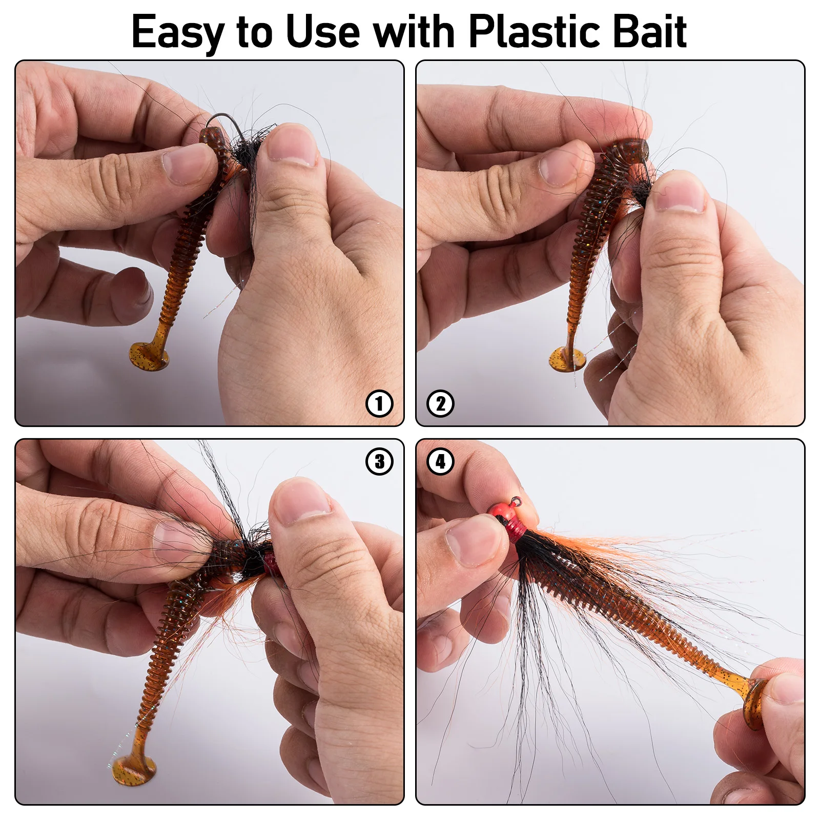 2. Gancho afilado: anzuelo de acero de alto carbono de primera calidad con punta de aguja extremadamente afilada, puede penetrar fácilmente en el cebo de plástico y garantiza una captura exitosa en todo momento.