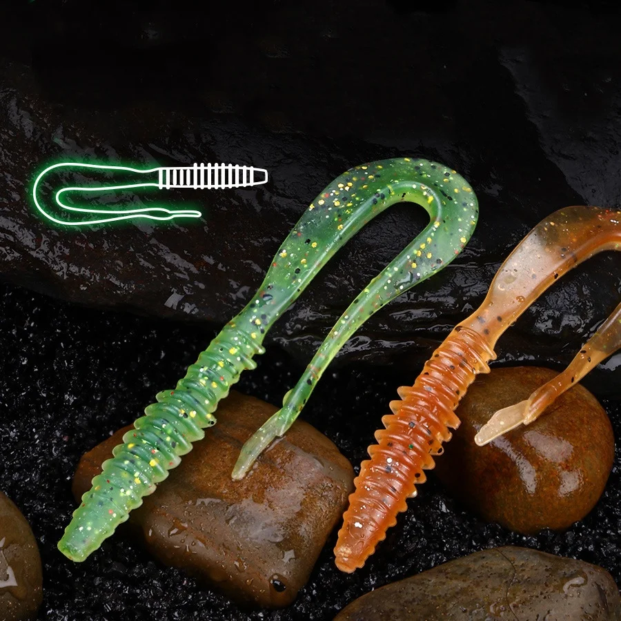 Señuelo de pesca con cola de golondrina, cebo suave con purpurina colorida, 8cm, 1,8g, flotador, señuelos artificiales TPR, colas flexibles, lote de 5 piezas en oferta