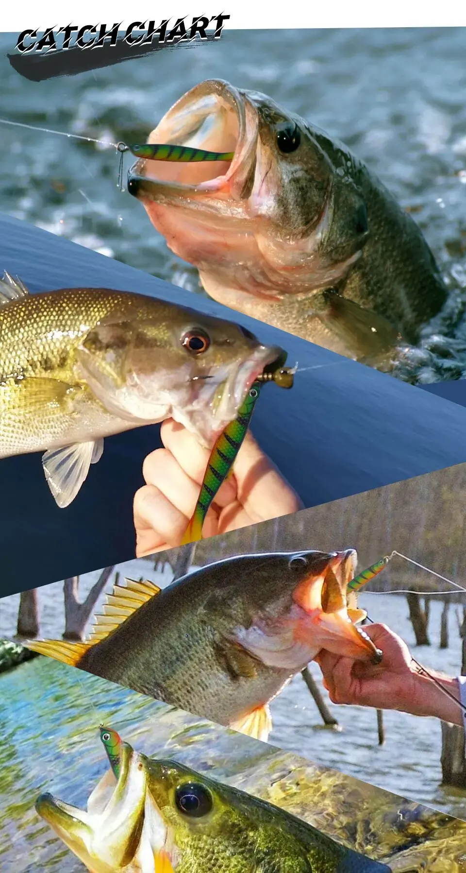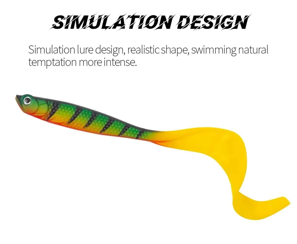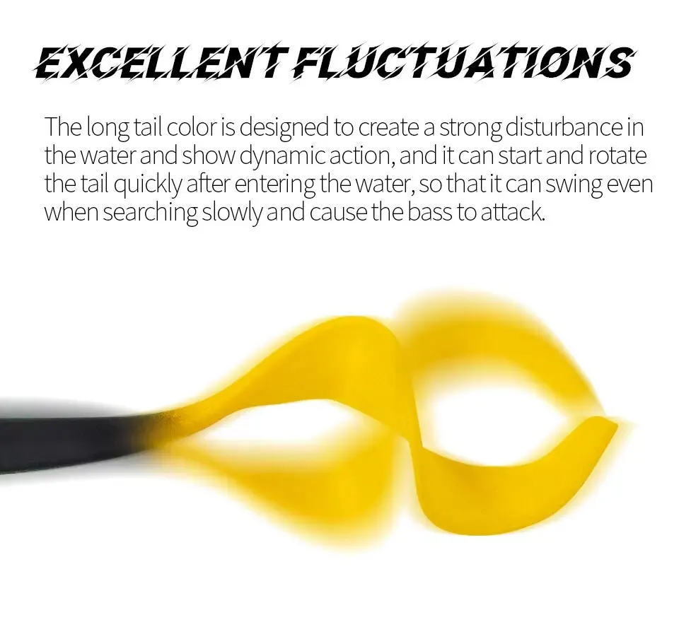 La cola se balancea horizontalmente a alta velocidad, imitando los camarones del río, y la cola rizada es más adecuada para la búsqueda horizontal.