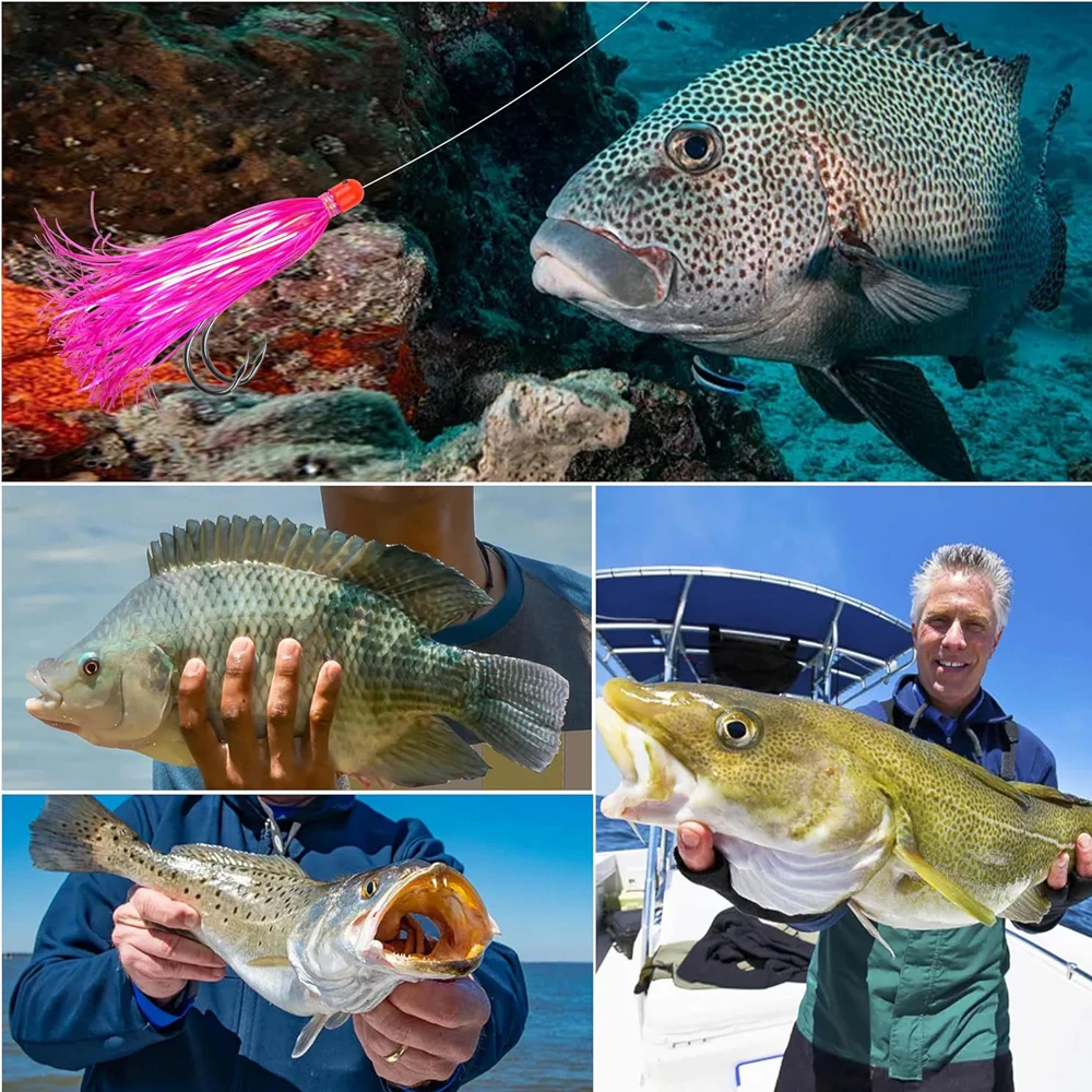 2. Cabezal de plantilla ponderado con Ojos Negros, ideal para curricán de alta velocidad. La falda de malla impermeable puede mejorar la relación de enganche, especialmente cuando la visibilidad bajo el agua es limitada.