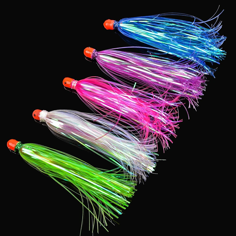 1. Cebo Mylar flash teaser faldas actualizado con pelo de cristal y material especial perla Flash, fuerte y duradero. Se mantiene bien incluso después de múltiples golpes.
