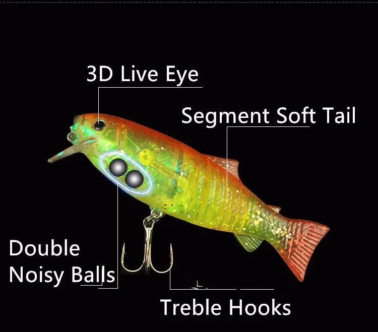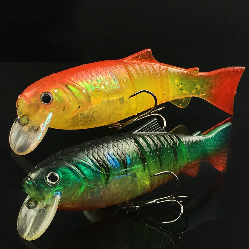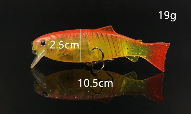 Señuelo de pesca de cola suave de varias secciones, pececillo, cuerpo de pez duro, señuelos artificiales, cebo de 10,5 cm/19g, lote de 2 piezas en oferta