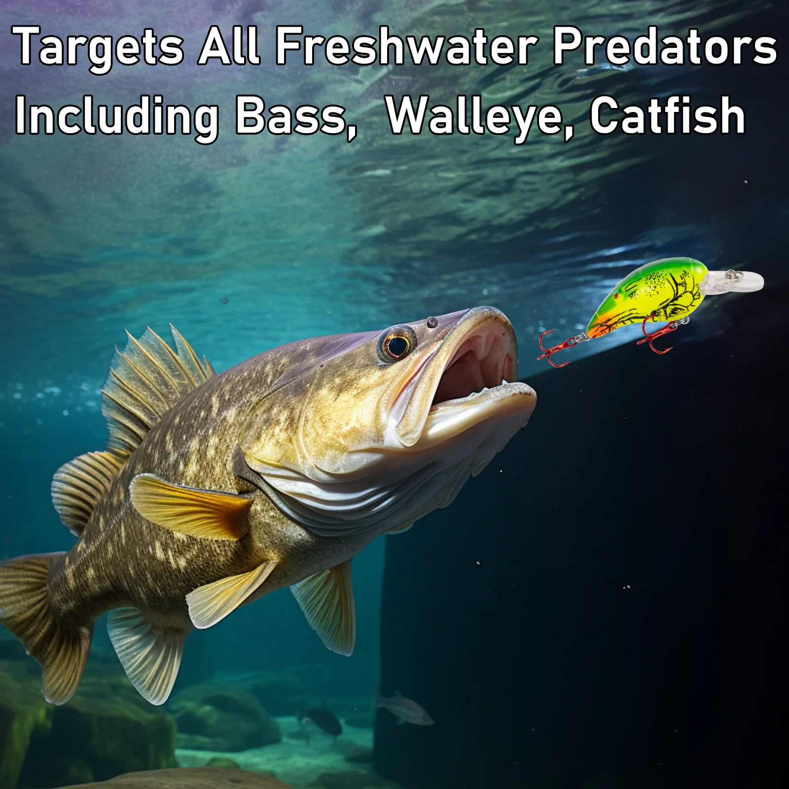 MATERIAL: Crankbait hecho de material ABS resistente, suficiente para soportar las mordeduras y ataques de los peces depredadores.