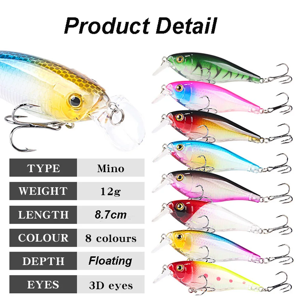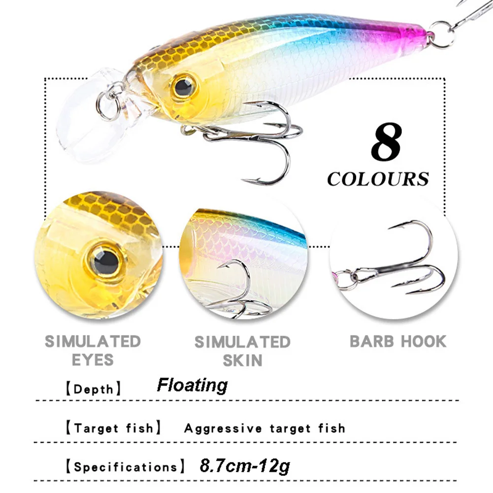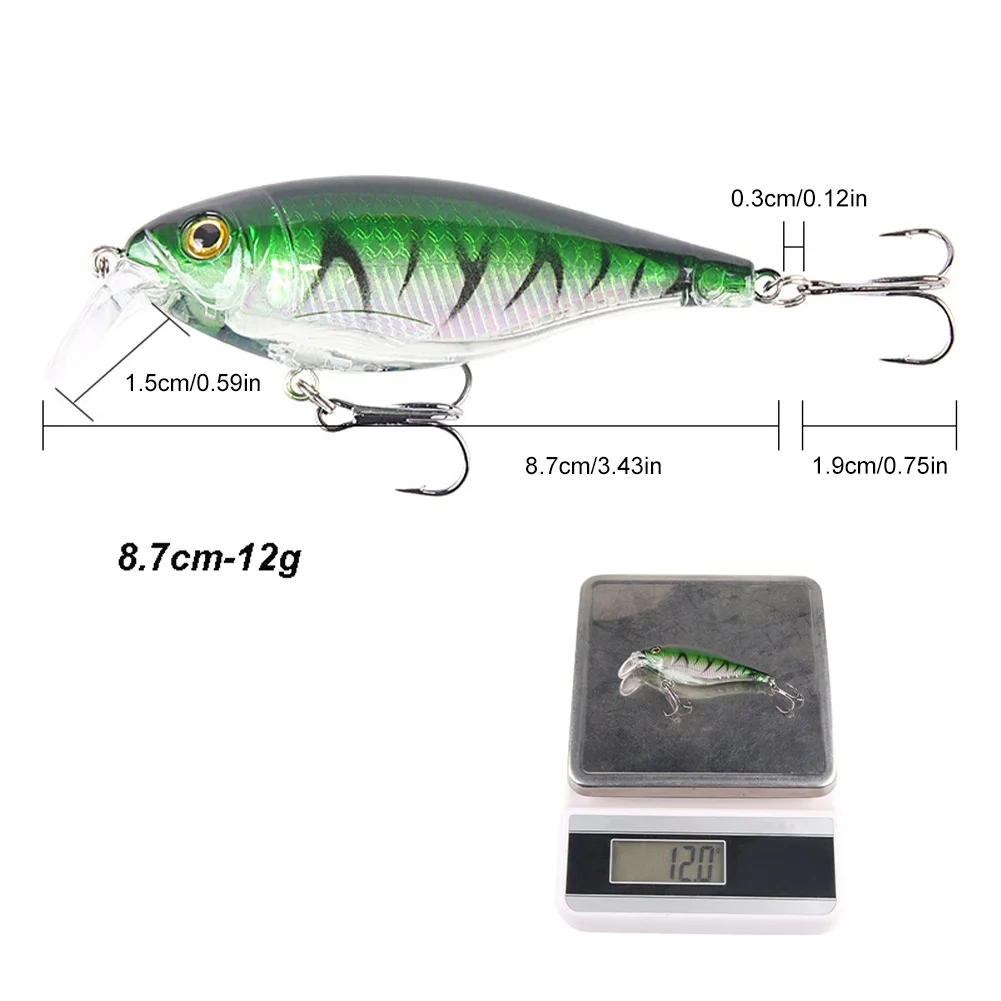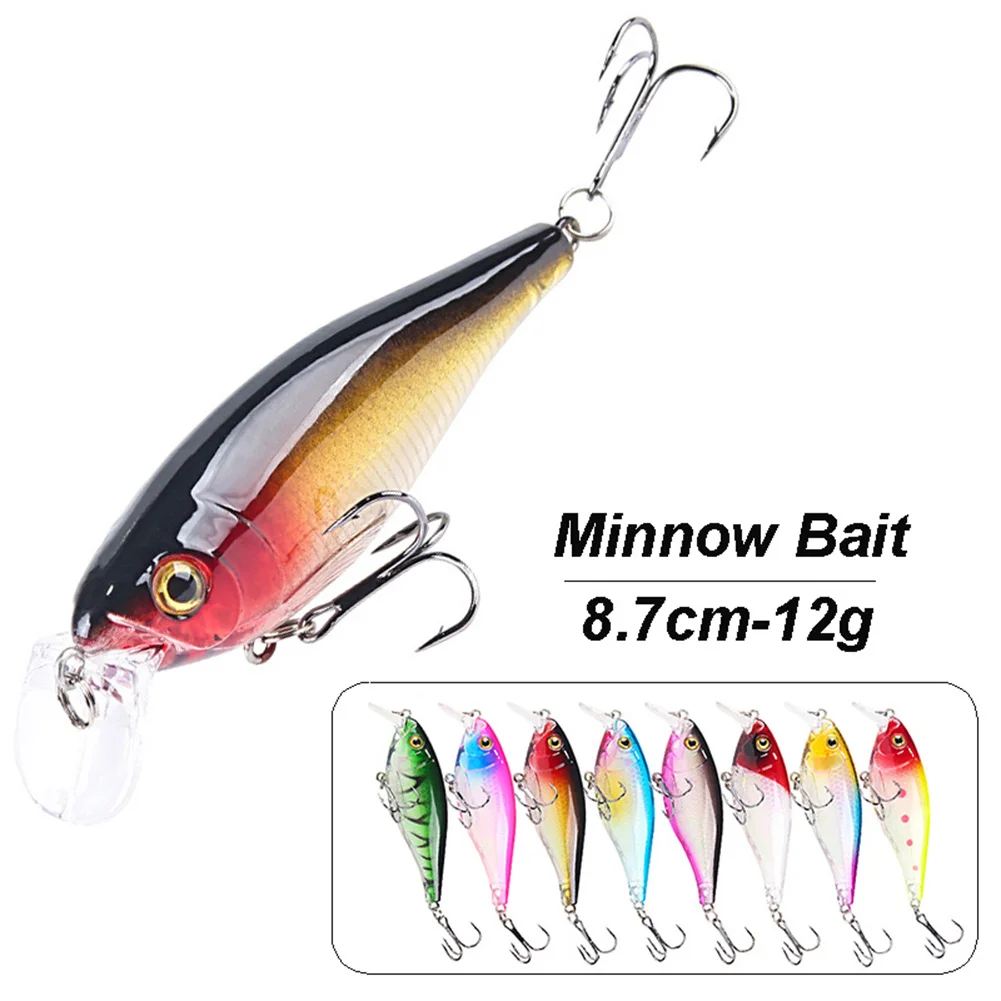 Señuelo de pesca Crankbait Pike Bait Minnow 8,7 cm 12g Buceo Wobblers Swimbait con 2 triples para accesorios de pesca de agua dulce
