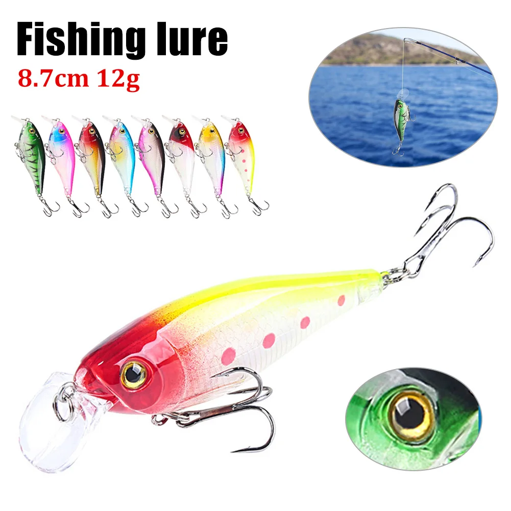 Señuelo de pesca Crankbait Pike Bait Minnow 8,7 cm 12g Buceo Wobblers Swimbait con 2 triples para accesorios de pesca de agua dulce