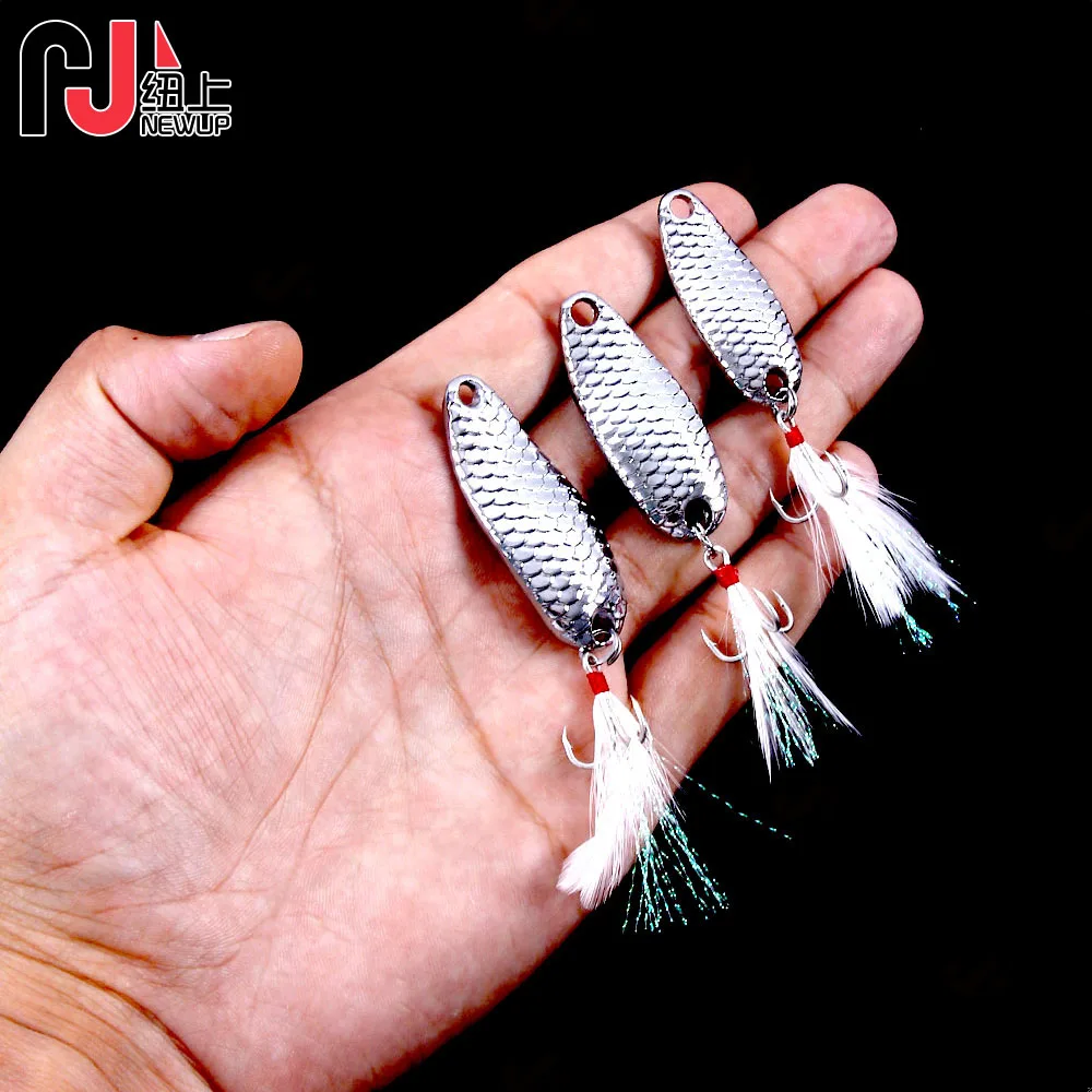 Señuelo de pesca con cuchara giratoria de Metal, 7,5g, 10g, 13g, cebos duros giratorios dorados y plateados para trucha, Lucio, pluma, anzuelo triple, 1 Uds.