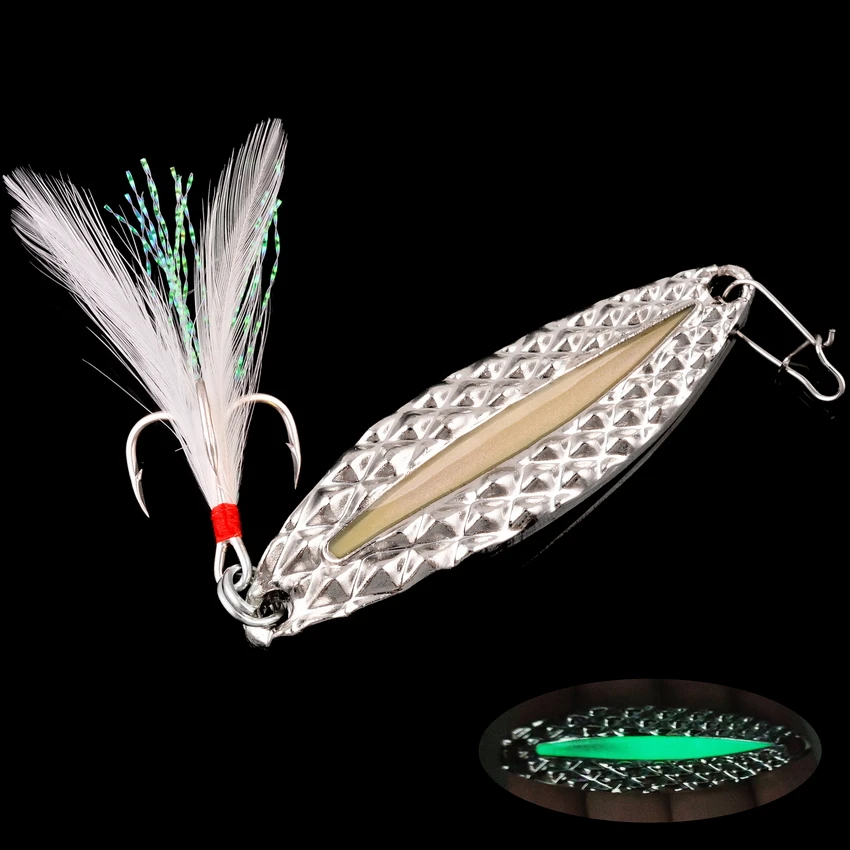 Señuelo de pesca con cuchara giratoria de Metal, cebos duros de lentejuelas de 2,5g-20g, Paillette de ruido con gancho de plumas triples, 1 Uds.