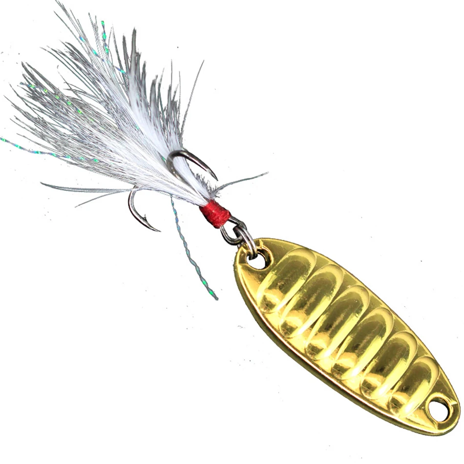 Señuelo de pesca de cuchara de Metal 2020 Artificial, cebo duro con pluma para Lucio, trucha, lubina, bagre, artículos para aparejos, 1 unidad