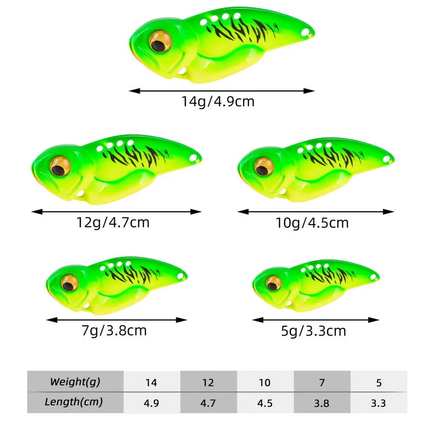 Señuelo de pesca con cuchara VIB de Metal, cebo giratorio de 5g-14g, Crankbait, cebo duro Artificial, aparejos de pesca Cicada VIB, 5 piezas