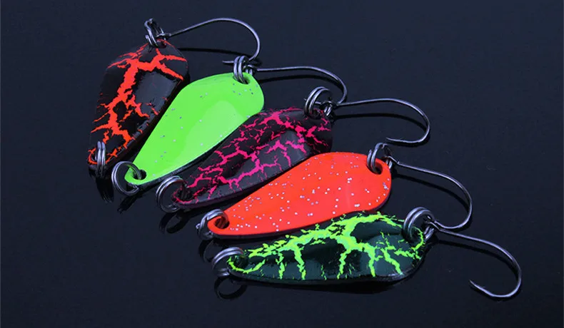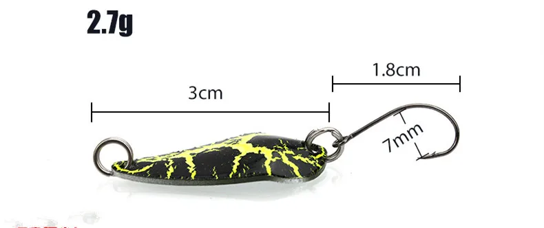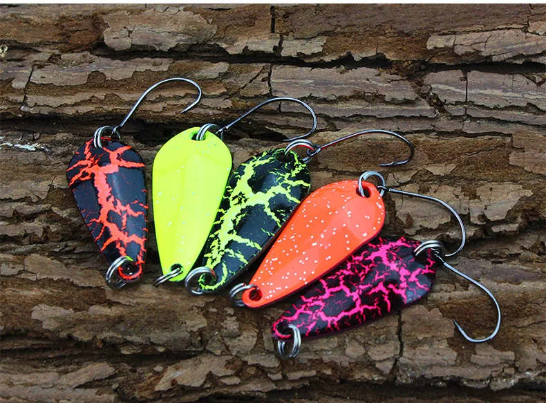 Señuelo de pesca, cucharas de cobre, señuelos de Metal artificiales, cebo duro de 3cm, 2,7g, aparejos de pesca de un solo gancho, lote de 5 piezas en oferta