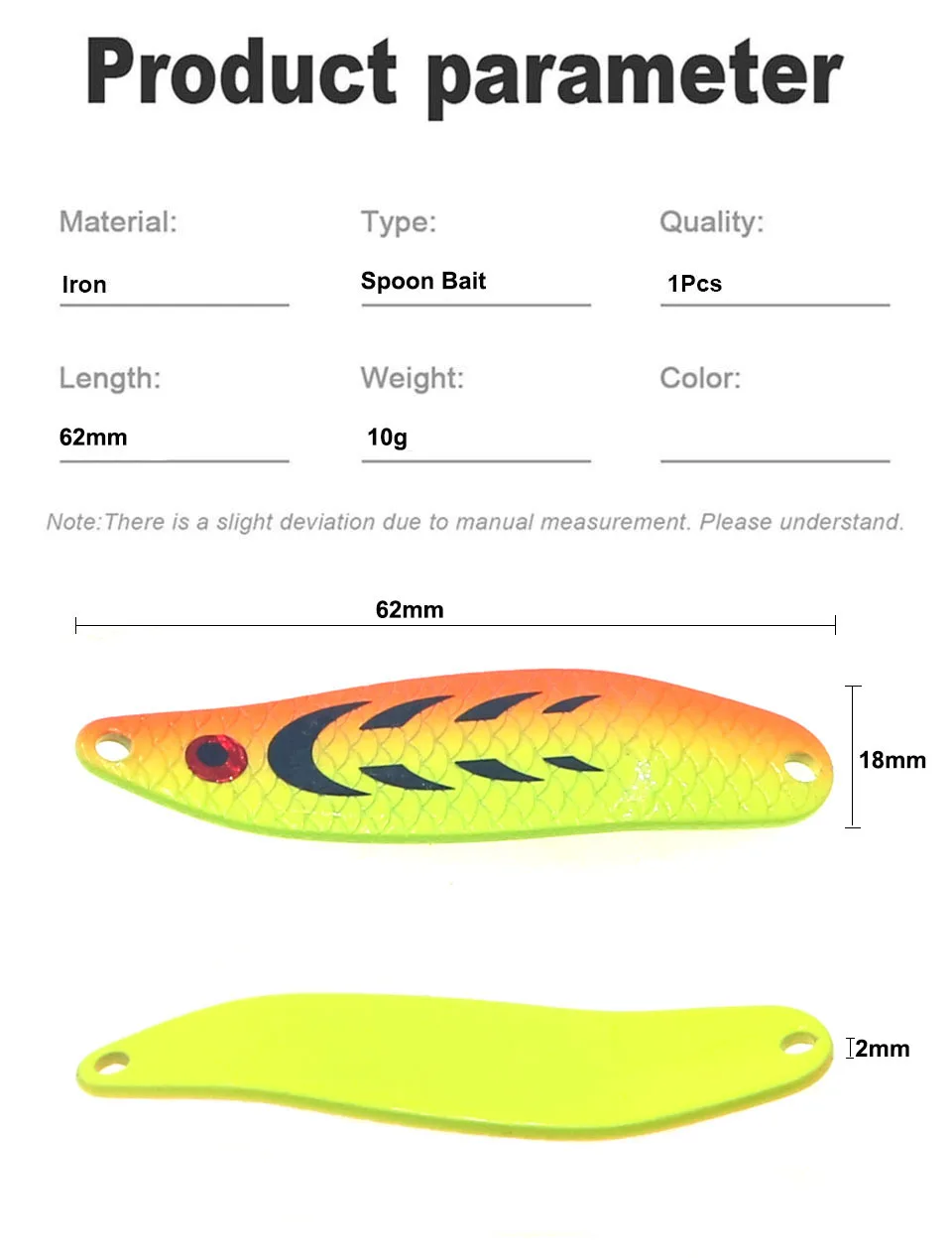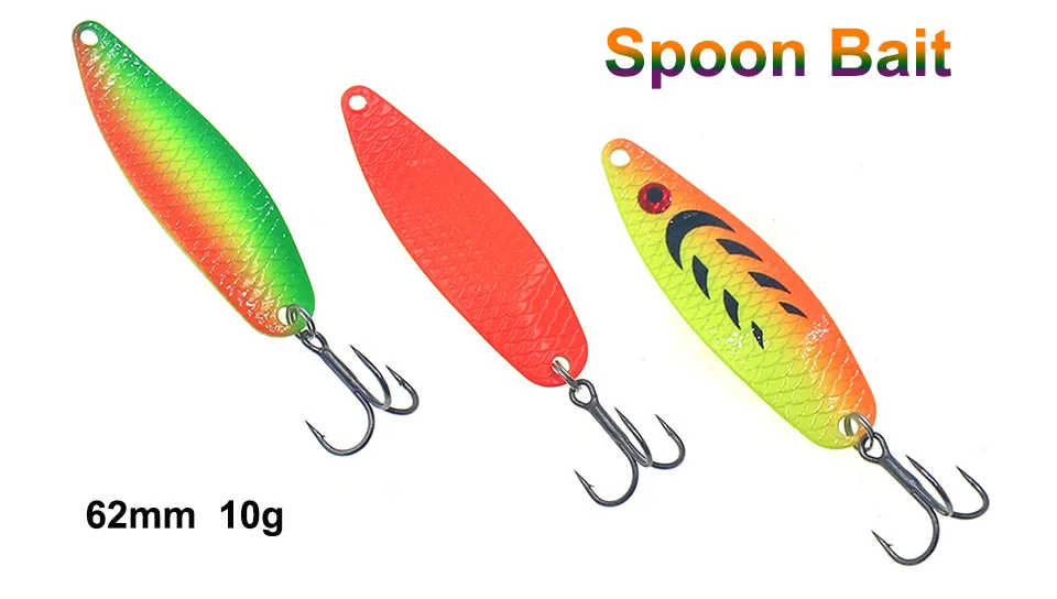 Señuelo de pesca con cucharas de Metal, señuelos duros de 62mm y 10g, anzuelo triple, cebo de Metal para lubina, salmón, Artificial, Wobblers, Spinner, SequinsJigging