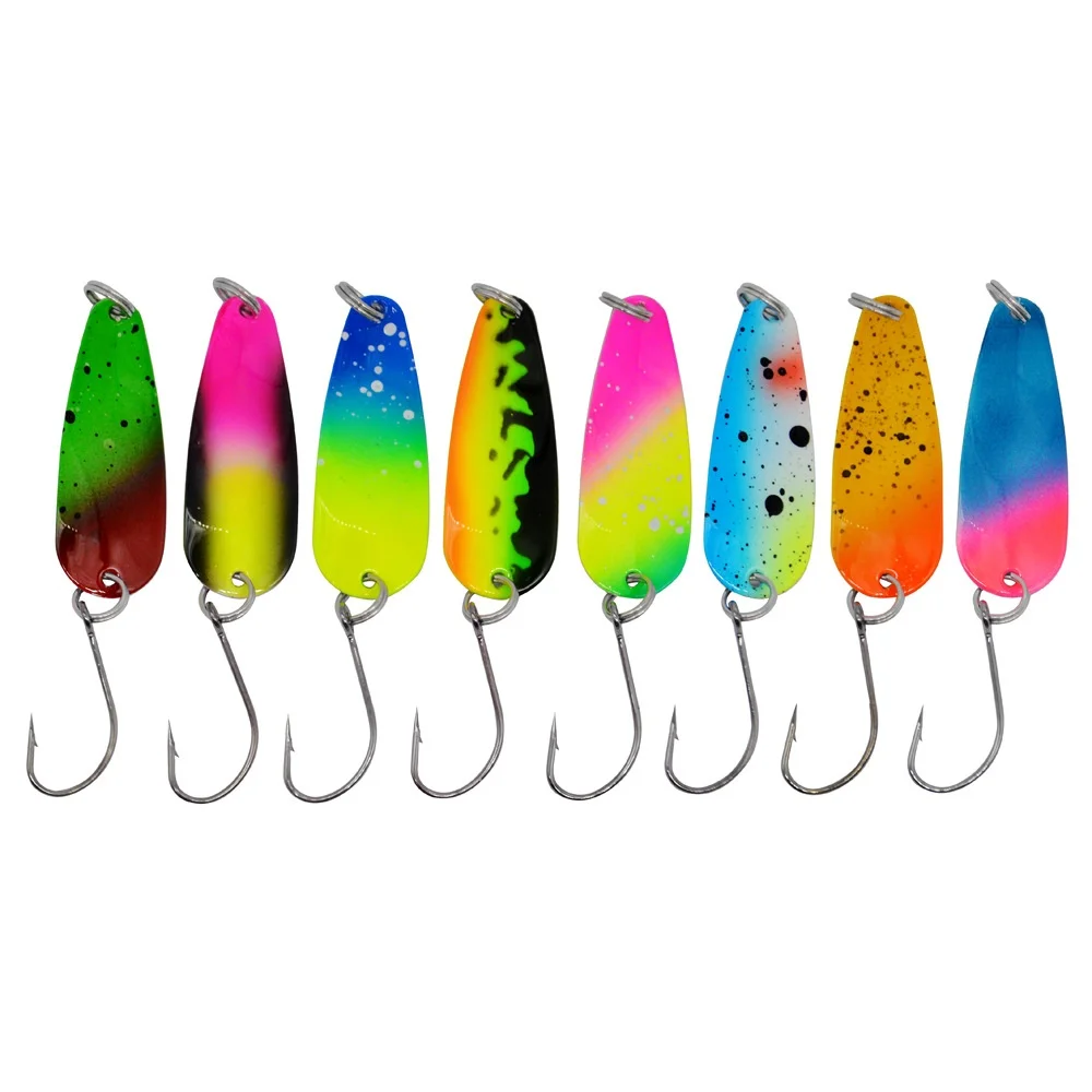 Señuelo de pesca con cucharas de un solo gancho, señuelos artificiales de Metal y cobre, lote de 8 piezas