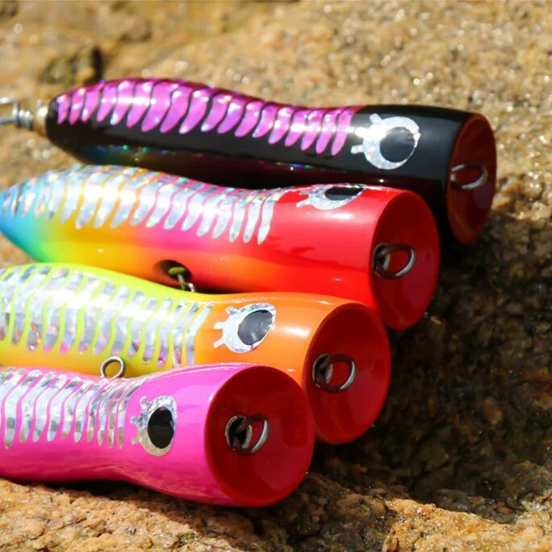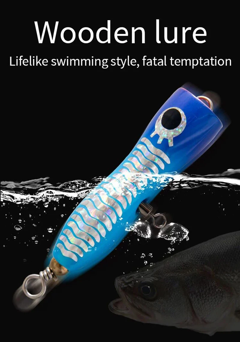 Señuelo de pesca de curricán Popper de madera, cebo Artificial para peces de playa, 8cm/15g, 10cm/30g, 1 unidad