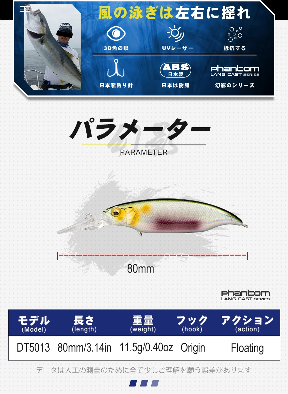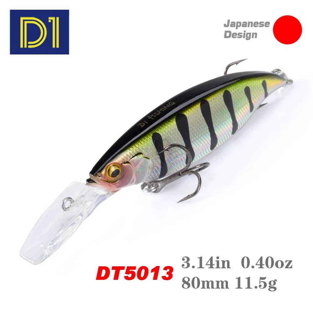 Señuelo de pesca D1 de labio largo, 80mm/11,5g, Wobblers rodante flotante, cebo duro magnético estable para pesca de lubina, aparejos de señuelo