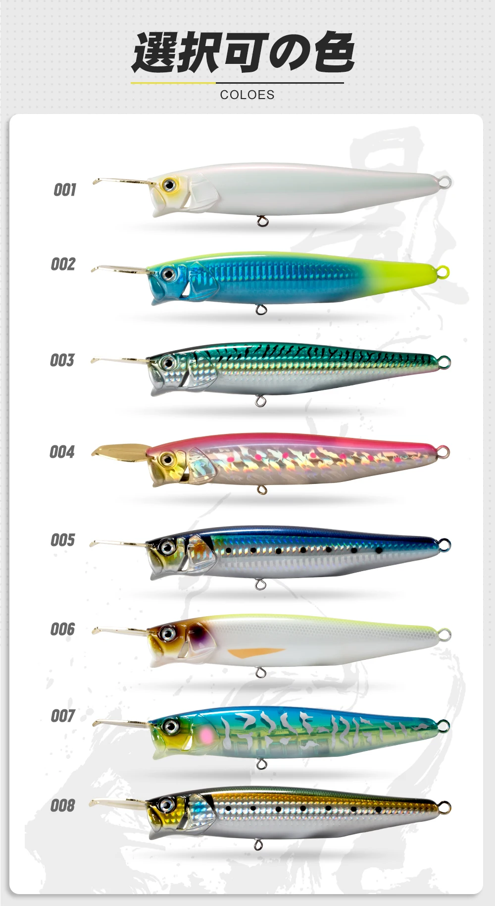 2.Presentamos un modelo muy atractivo equipado con una copa Popper en el RISER BAIT, es posible obtener una excelente distancia de vuelo sin reducir el peso, lo que no se puede lograr mediante cebo superficial convencional.